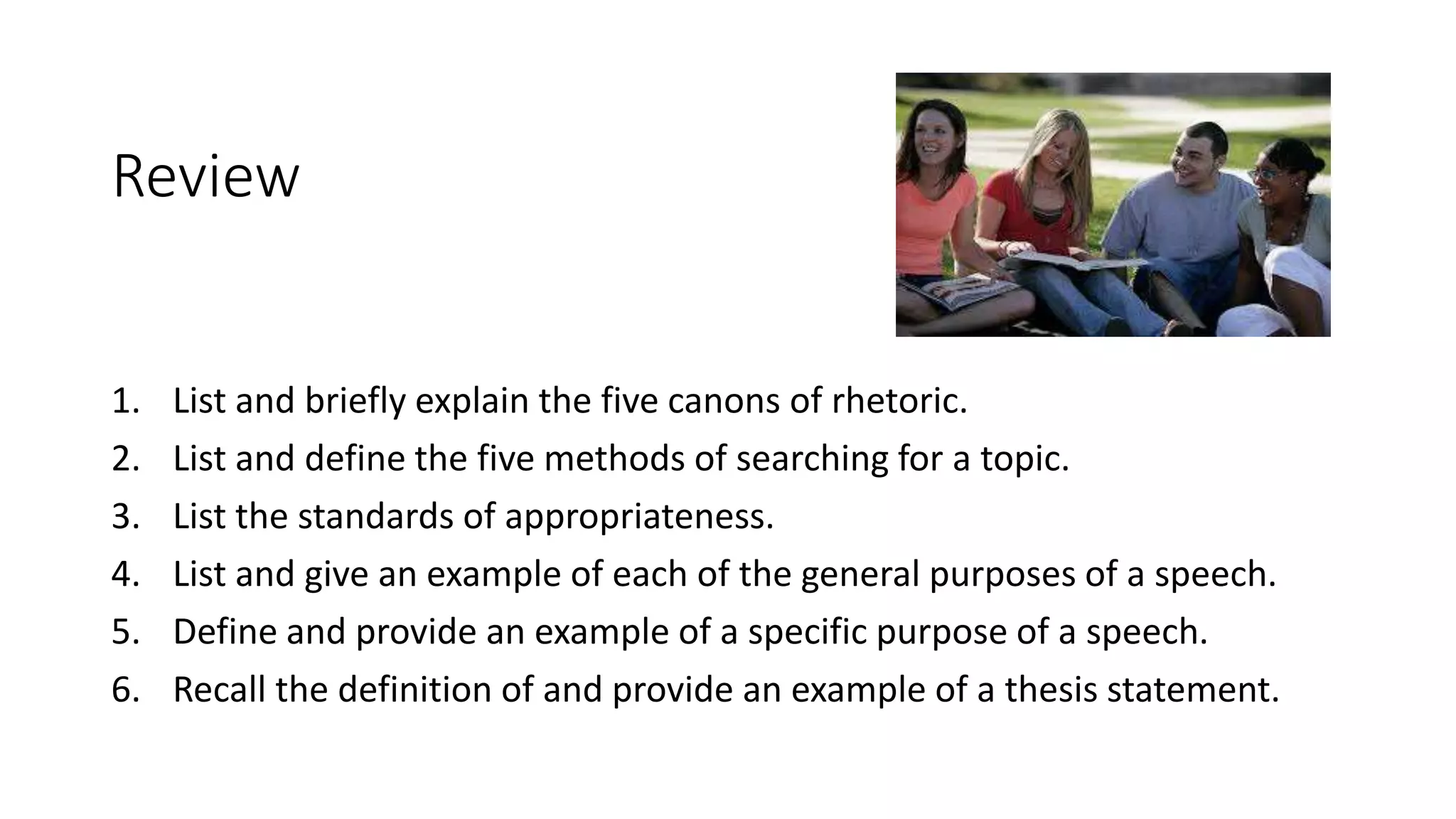 The document provides guidance on special occasion speeches by listing different types (e.g. to welcome, pay tribute), discussing formality, structure, and manuscript use. It also includes links to example speeches on topics like best man speeches, retirement speeches, and birthdays. Students are asked to review chapters on rhetoric and outlining, observe example speeches online, and prepare a draft manuscript for their own 2-3 minute special occasion speech.