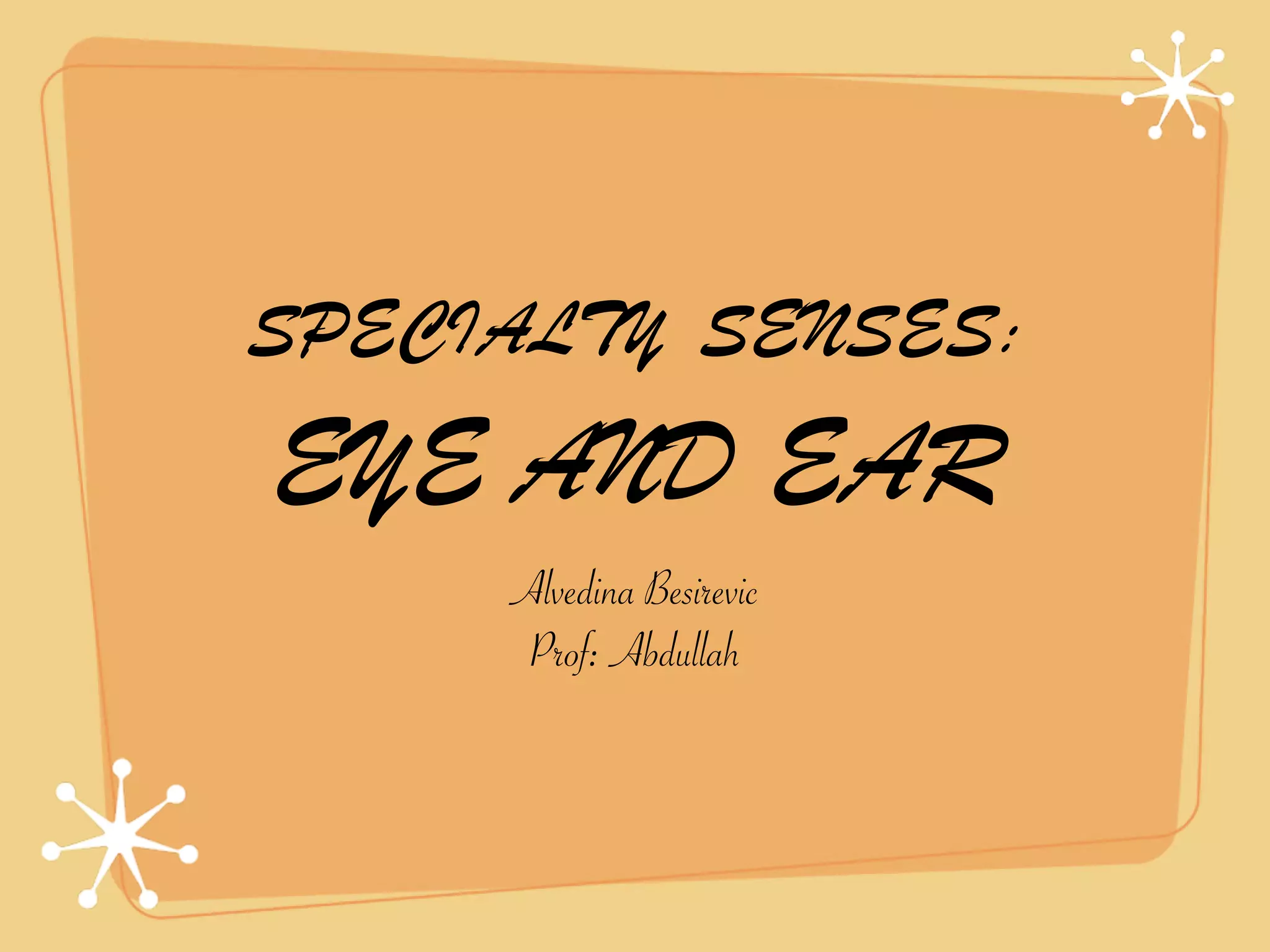 The document discusses various terms related to the eye and ear: A pressure equalizing tube can be placed in a child's eardrum to help drain trapped fluid and equalize pressure between the inner ear and atmosphere. EENT refers to the ear, eyes, nose and throat. Bone conduction conducts sounds to the inner ear and skull. The term "AU" means each ear in Latin. Otitis media is an acute ear infection caused by bacteria or viruses that affects the middle ear. Emmetropia describes clear vision when the eyes are relaxed and an object is 20 feet away, representing normal vision. Exotropia is when an eye turns outward. "OS" refers to the left eye in Latin. Extra