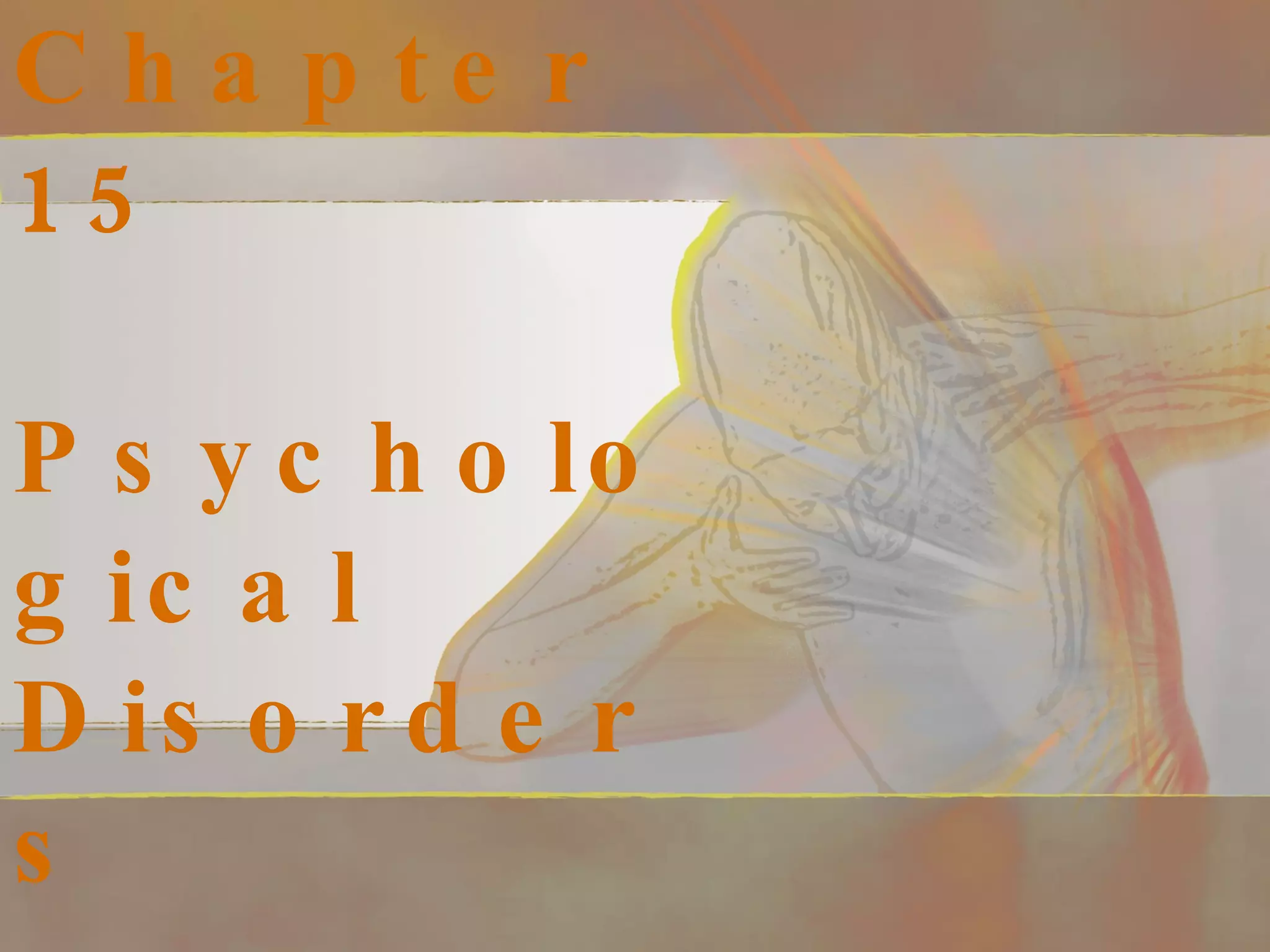 The document provides an overview of psychological disorders including their historical perspectives, definitions, causes, diagnoses, and prevalence. It discusses how disorders were traditionally viewed and treated, defines what constitutes a psychological disorder today, and describes several major categories of disorders like anxiety disorders, mood disorders, schizophrenia, and personality disorders. Key classification systems like the DSM-IV-TR are also summarized that are used to diagnose and categorize different psychological conditions.