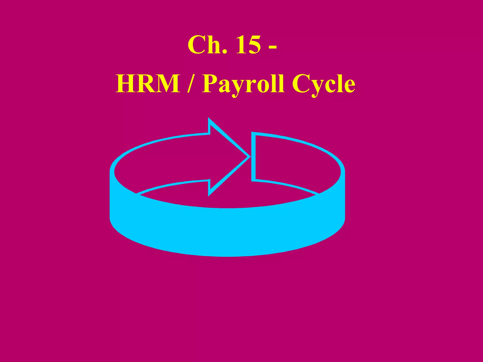 The document describes the payroll cycle which includes: 1) updating the payroll master file with changes, 2) updating tax rates and deductions, 3) validating employee time and attendance data, and 4) preparing the payroll. It notes that employees are the most important asset and integrating non-financial measures is important. Diagrams show the flow of payroll information from departments to the payroll system to employees.