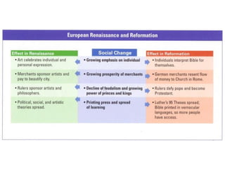 Martin Luther's posting of his 95 Theses criticizing the Catholic Church's sale of indulgences sparked the Protestant Reformation. Luther's religious revolt spread Protestantism across Germany and northern Europe. King Henry VIII established the Church of England after the Pope refused to annul his marriage, making England a Protestant nation. John Calvin further developed Protestant theology, believing in predestination and establishing a theocracy in Geneva. The Reformation divided Western Christianity between Catholics and Protestants.
