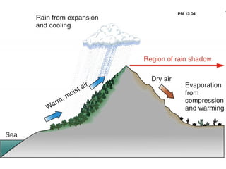 4) Mechanisms that cause air to rise and condense to form clouds, such as orographic lifting and convection.