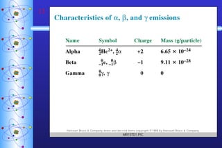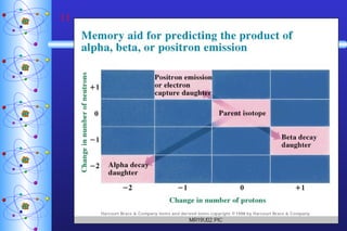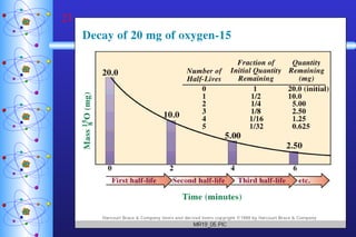 2) Radioactive decay follows first-order kinetics and half-life is used to describe the rate of decay. Carbon-14 dating and lead-uranium dating use radioactive half-lives to determine the age of materials.