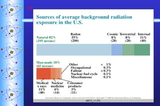 3) Nuclear reactions like fission and fusion release large amounts of energy. Fission is the splitting of heavy nuclei like uranium-235 and is used in nuclear power reactors. Fusion combines light nuclei and occurs in