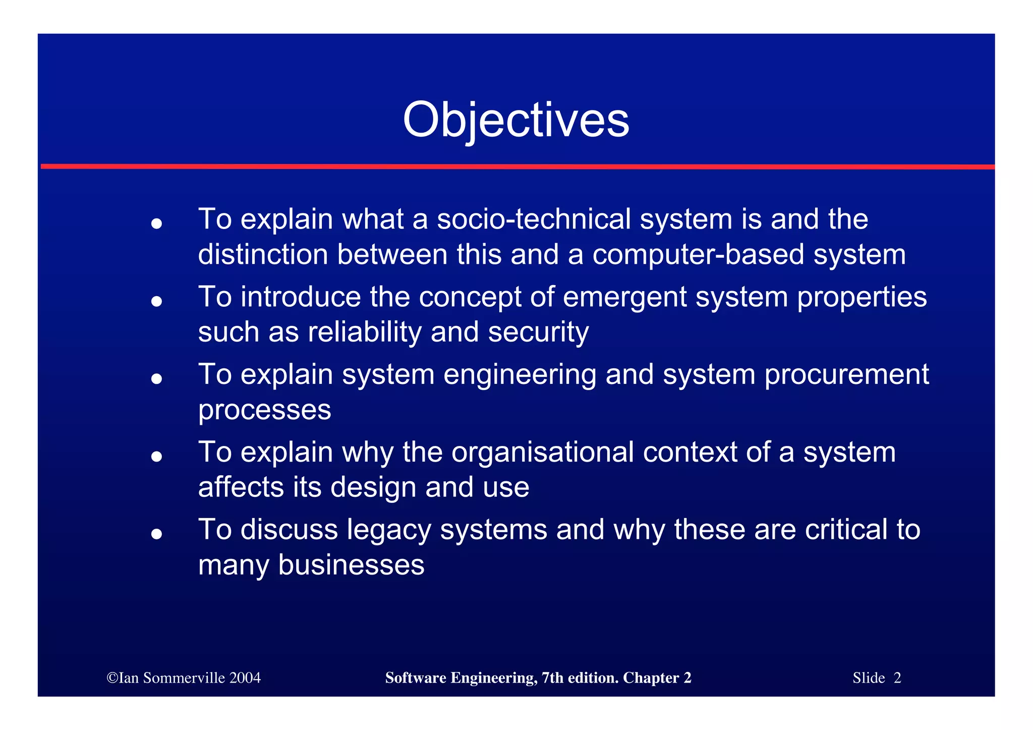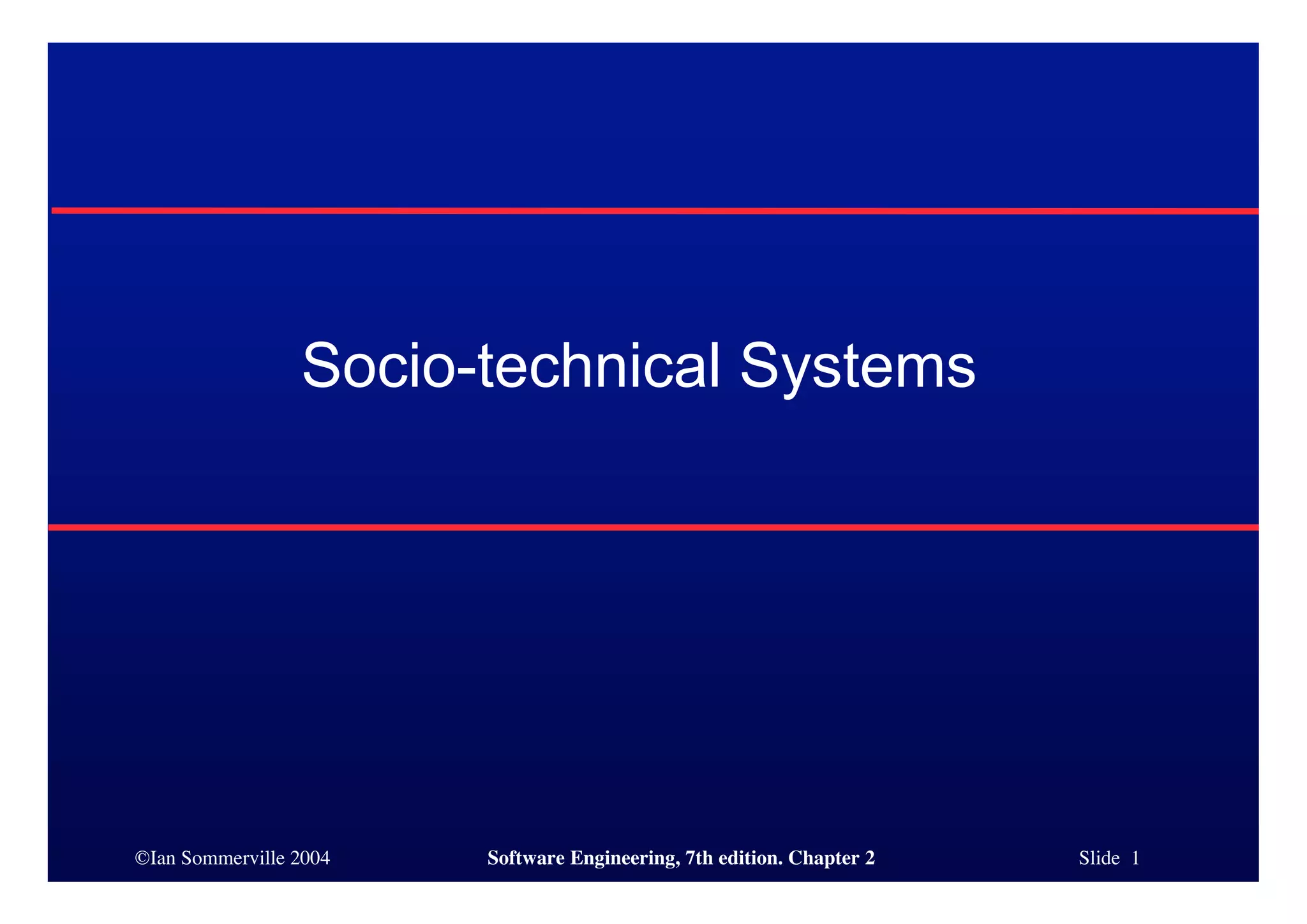 This document discusses socio-technical systems and their engineering. It defines socio-technical systems as systems that include both technical and human/organizational elements. Key points include: emergent properties depend on relationships between system components; reliability depends on interactions between hardware, software, and human factors; systems engineering involves specifying, designing, and maintaining complex systems; organizational context and processes affect system design and use; legacy systems are critical but costly to maintain.
