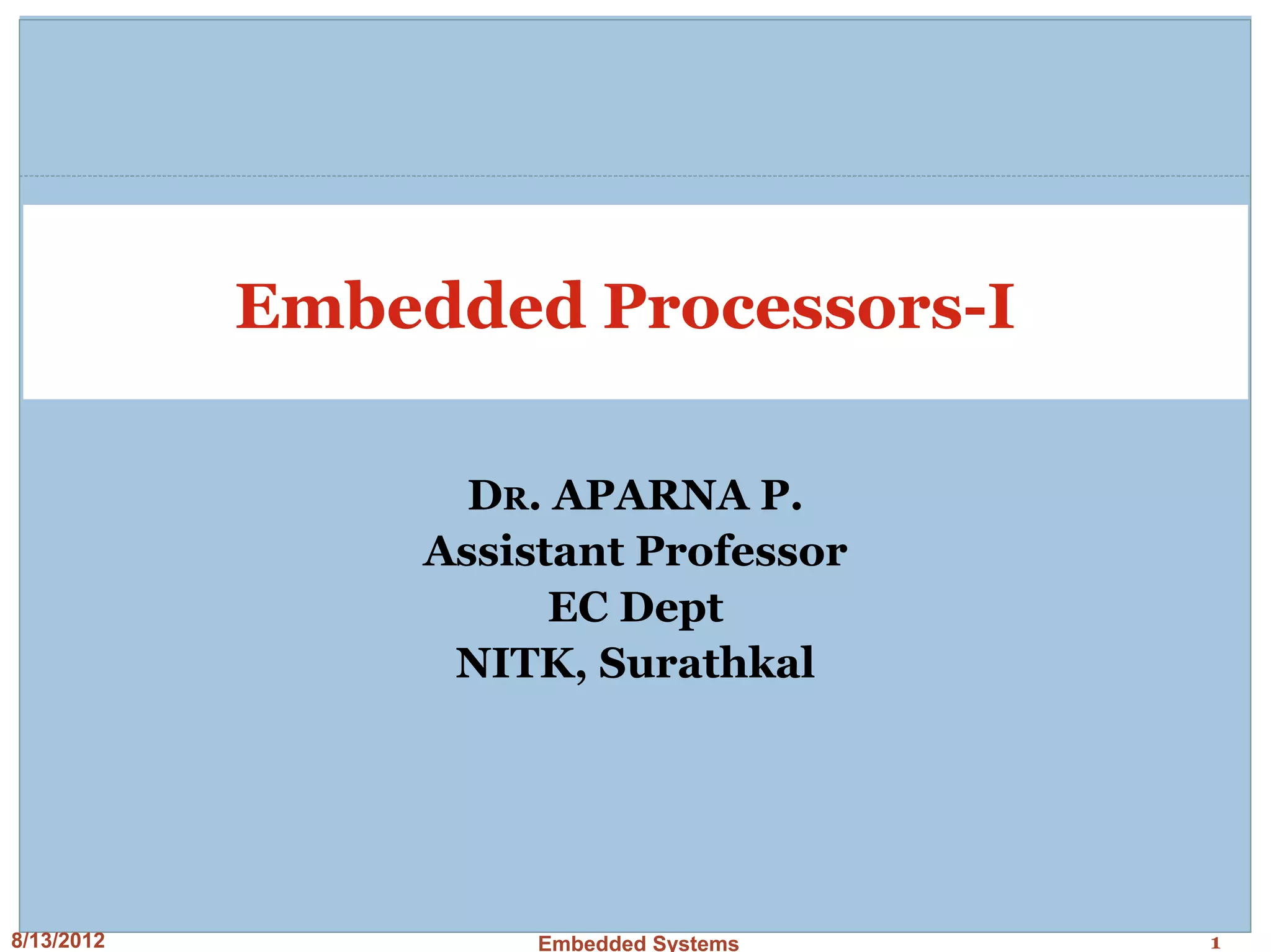 This document discusses embedded processors, including the VIA C3 processor and PowerPC MPC601 processor. It provides details on the architecture and design of the VIA C3 processor, including its instruction pipeline, instruction decode unit, branch prediction, integer unit, floating point unit, MMX and 3D unit. It notes some key characteristics of the VIA C3 such as its use of the x86 instruction set, pipelined design, and higher power consumption due to complexity. The document then briefly introduces the PowerPC MPC601 processor.