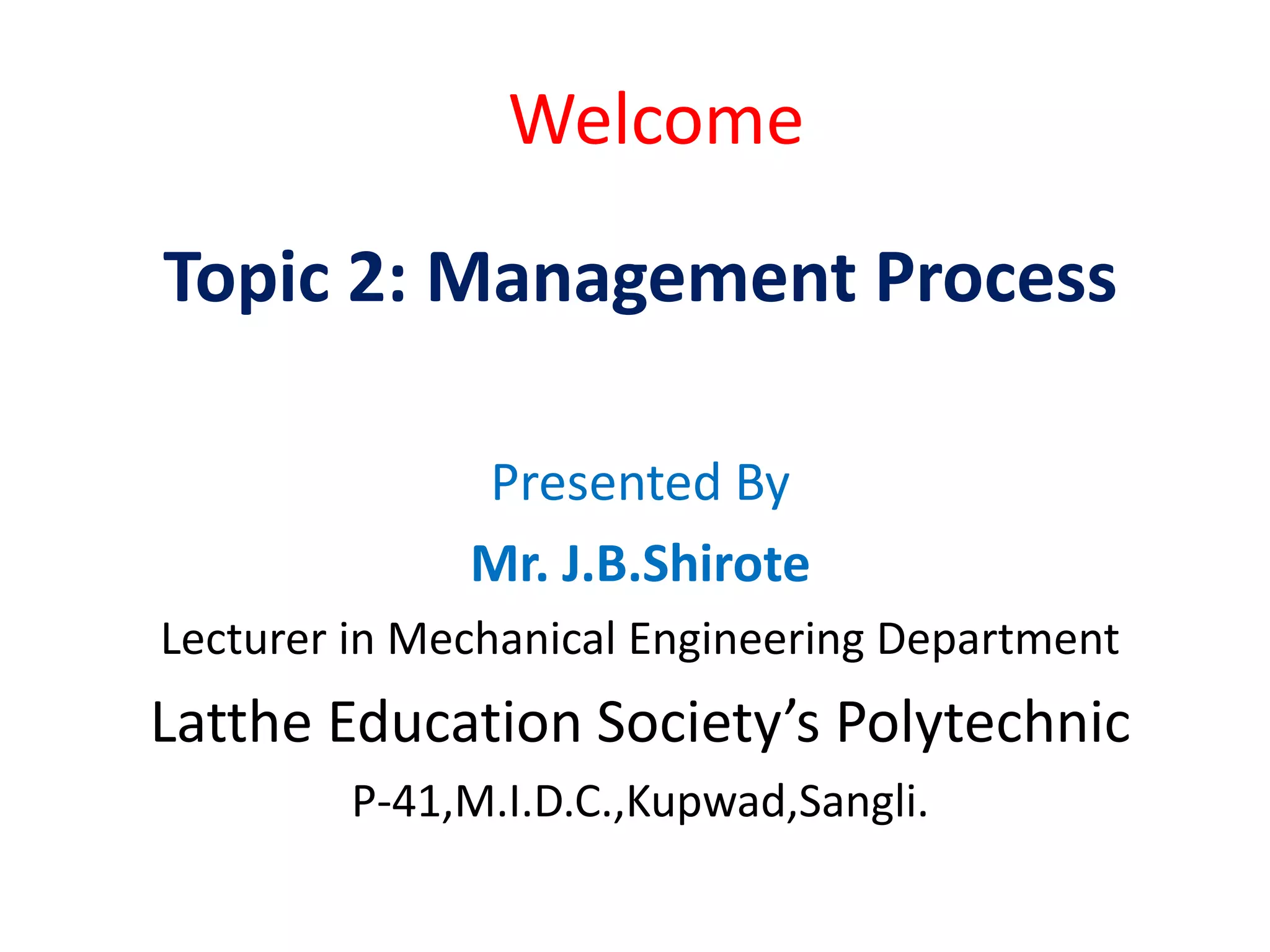 1. The document discusses the management process and provides an overview of key management topics including definitions of management, the management process, management functions, evolution of management theories, and principles of management.