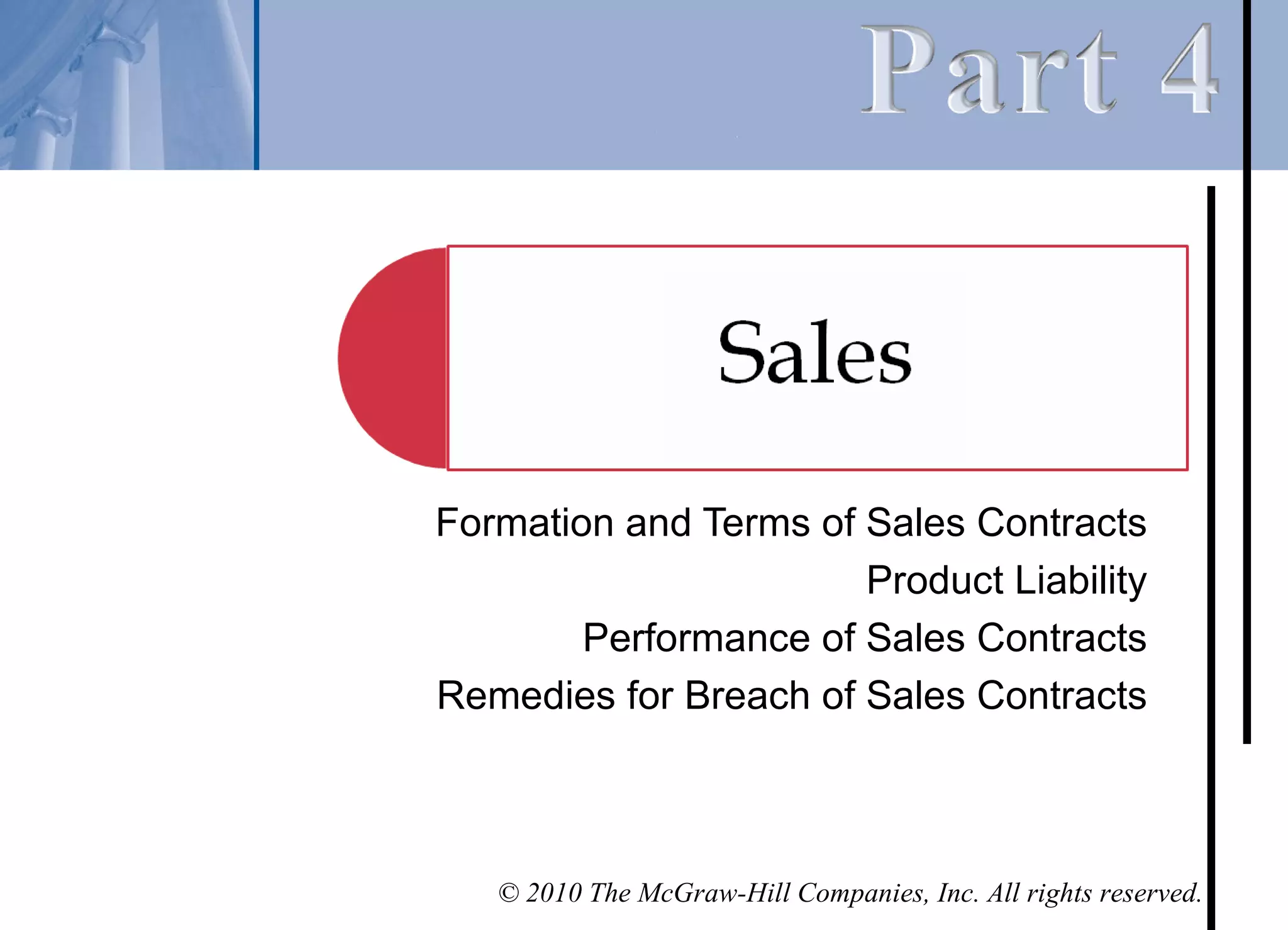 The document discusses product liability law and various legal theories for recovery, such as express warranty, implied warranties, negligence, and strict liability. It also covers other theories of recovery, defenses, damages, disclaimers, and statistics related to product liability cases. The overall topic is an overview of the legal framework and considerations for product liability lawsuits in the United States.