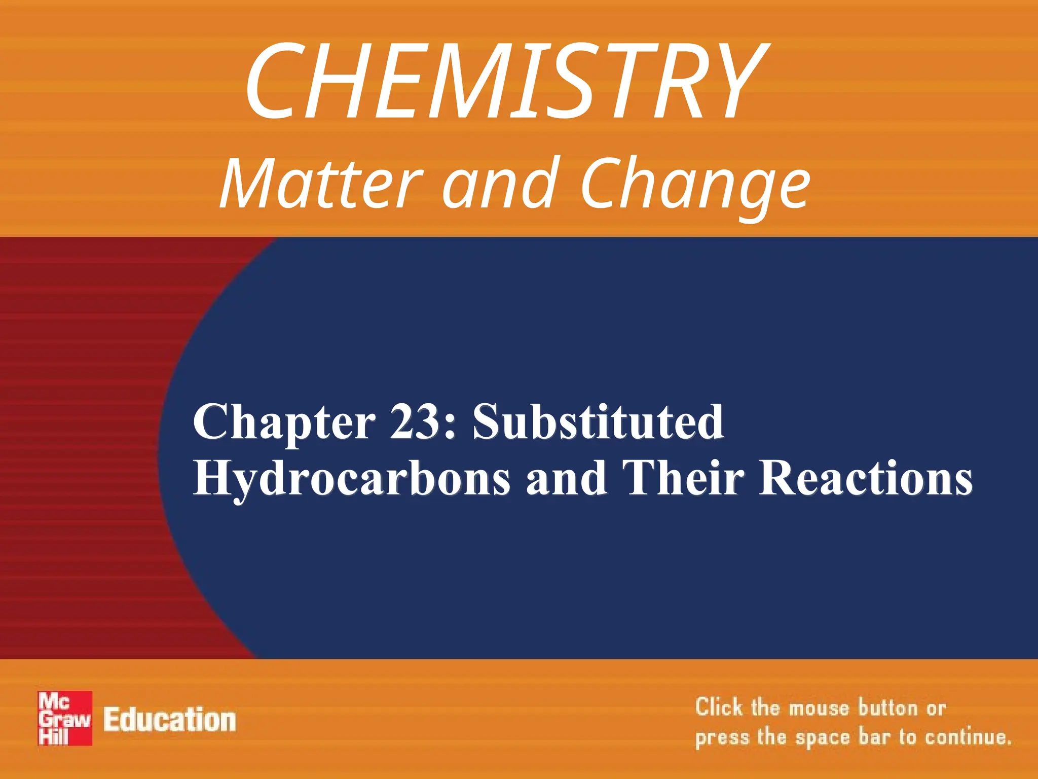 Chapter 23 discusses substituted hydrocarbons and their reactions, covering various functional groups such as alkyl halides, aryl halides, alcohols, ethers, amines, carbonyl compounds, and polymers. It explains the process of substitution reactions, the properties of these organic compounds, and their classification into categories like substitution, addition, and condensation reactions. The chapter emphasizes the importance of functional groups in determining the chemical and physical properties of organic compounds.