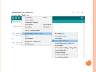 3. The document also provides an overview of programming concepts for Arduino like using variables, constants, and the setup and loop functions.