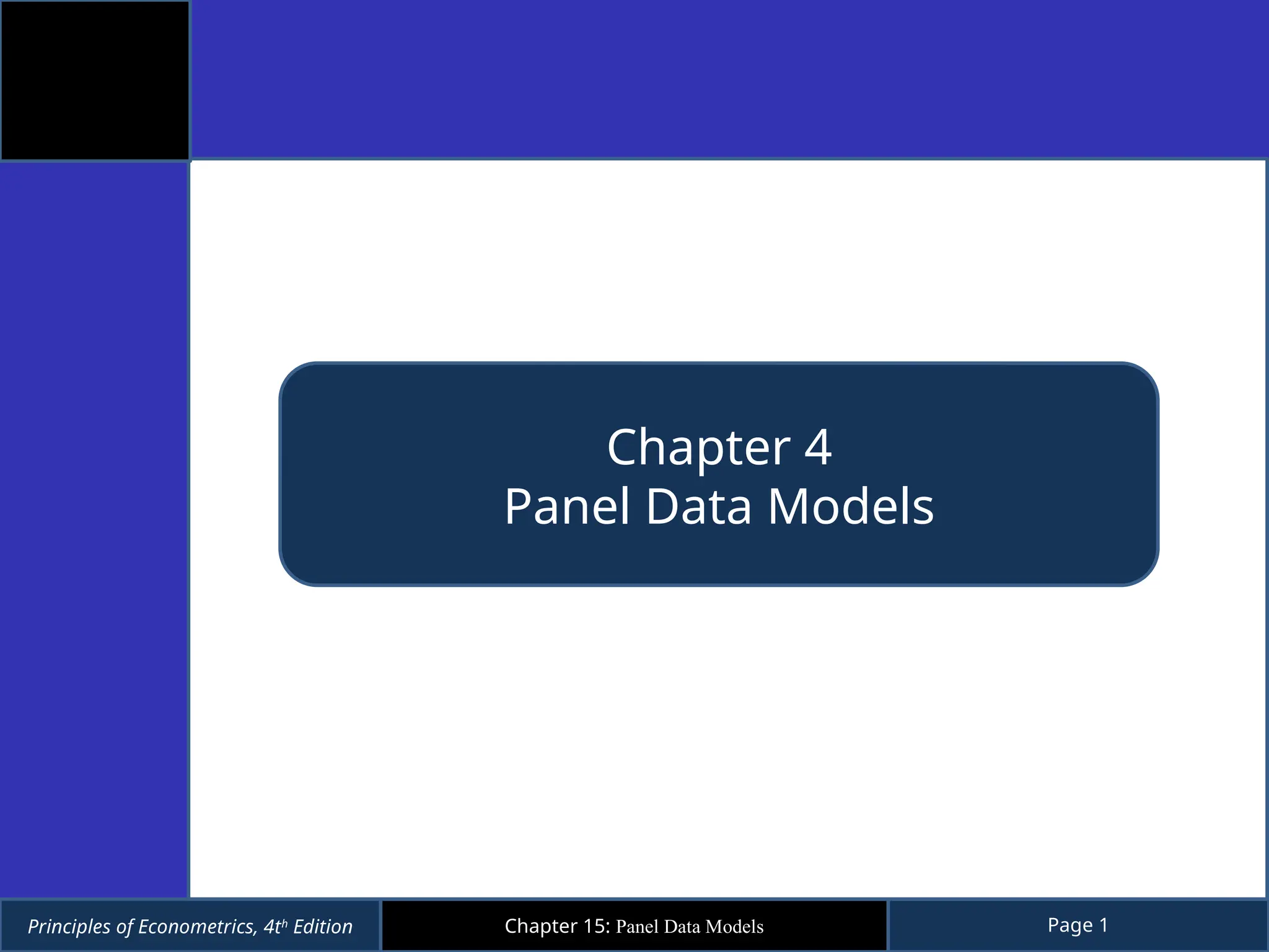 Chapter 15 of 'Principles of Econometrics' discusses panel data models, which integrate cross-sectional and time series data to analyze changes over time in multiple subjects. It differentiates between balanced and unbalanced panels and compares fixed effects and random effects models, highlighting the strengths and weaknesses of pooled least squares estimations and the implications of individual heterogeneity. The chapter also introduces the Hausman test for model selection between fixed and random effects models, providing guidance on when to use each model based on correlations between error components and explanatory variables.