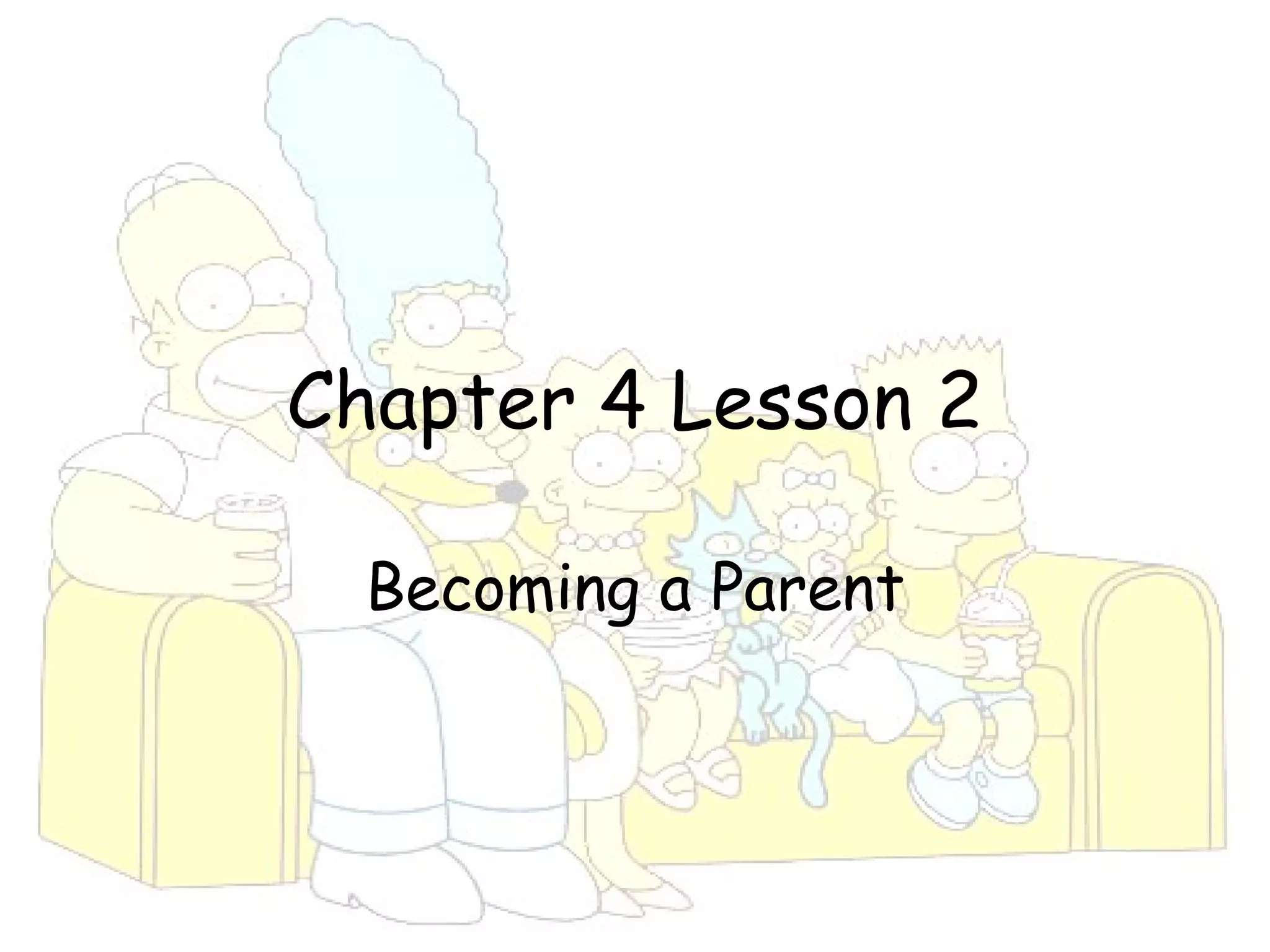 The document discusses reasons why people have children, the roles and responsibilities of parents in raising healthy families, and the effects of family relationships on health. It then focuses on the challenges of teen parenthood, noting that teens are often unprepared for the demands of parenting, and that teen pregnancy can negatively impact physical health, social life, and education attainment. The best decision for teens is often to delay parenthood through abstinence until they are older and more mature.