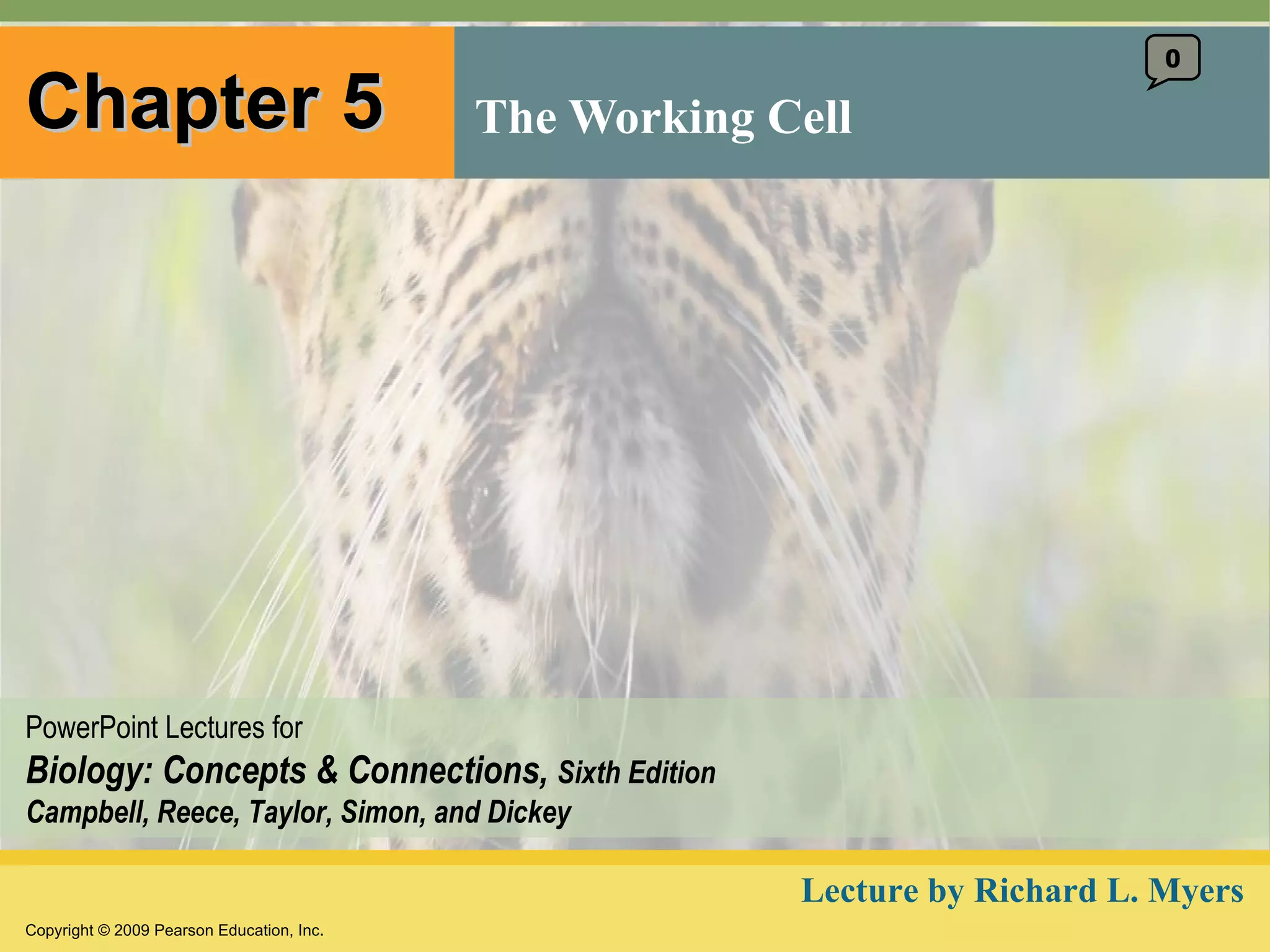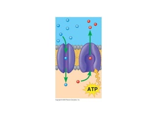 The document discusses cell membranes and their role in cellular processes. It covers how membranes are composed of phospholipids and proteins arranged in a fluid mosaic. Membranes allow selective permeability through diffusion, facilitated transport, and active transport. Transport proteins and vesicles move molecules across membranes. The chapter also addresses how cells use ATP and enzymes to drive energetic cellular processes and chemical reactions.