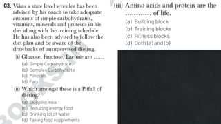 3. It provides examples of food sources and functions of various nutrients important for athletes, including carbohydrates, proteins, fats, vitamins, and minerals. The document emphasizes the importance of a balanced