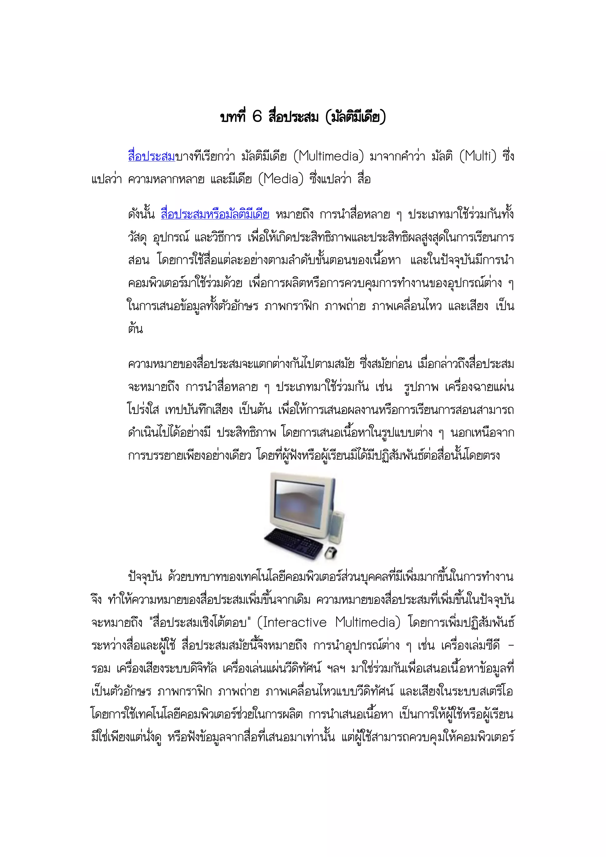 (āļĄāļąāļĨāļāļīāļĄāļĩāđāļāļĩāļĒ) āđ āļŠāļ·āđāļāļāļĢāļ°āļŠāļĄāļāļēāļāļāļĩāđāļĢāļĩāļĒāļāļ§āđāļē āļĄāļąāļĨāļāļīāļĄāļĩāđāļāļĩāļĒ (Multimedia) āļĄāļēāļāļēāļāļāļēāļ§āđāļē āļĄāļąāļĨāļāļī (Multi) āļāļķāđāļ āđāļāļĨāļ§āđāļē āļāļ§āļēāļĄāļŦāļĨāļēāļāļŦāļĨāļēāļĒ āđāļĨāļ°āļĄāļĩāđāļāļĩāļĒ (Media) āļāļķāđāļāđāļāļĨāļ§āđāļē āļŠāļ·āđāļ āļāļąāļāļāļąāđāļ āļŠāļ·āđāļāļāļĢāļ°āļŠāļĄāļŦāļĢāļ·āļāļĄāļąāļĨāļāļīāļĄāļĩāđāļāļĩāļĒ āļŦāļĄāļēāļĒāļāļķāļ āļāļēāļĢāļāļēāļŠāļ·āđāļāļŦāļĨāļēāļĒ āđ āļāļĢāļ°āđāļ āļāļĄāļēāđāļāđāļĢāđāļ§āļĄāļāļąāļāļāļąāđāļ āļ§āļąāļŠāļāļļ āļāļļāļāļāļĢāļāđ āđāļĨāļ°āļ§āļīāļāļĩāļāļēāļĢ āđāļāļ·āđāļāđāļŦāđāđāļāļīāļāļāļĢāļ°āļŠāļīāļāļāļīāļ āļēāļāđāļĨāļ°āļāļĢāļ°āļŠāļīāļāļāļīāļāļĨāļŠāļđāļāļŠāļļāļāđāļāļāļēāļĢāđāļĢāļĩāļĒāļāļāļēāļĢ āļŠāļāļ āđāļāļĒāļāļēāļĢāđāļāđāļŠāļ·āđāļāđāļāđāļĨāļ°āļāļĒāđāļēāļāļāļēāļĄāļĨāļēāļāļąāļāļāļąāđāļāļāļāļāļāļāļāđāļāļ·āđāļāļŦāļē āđāļĨāļ°āđāļāļāļąāļāļāļļāļāļąāļāļĄāļĩāļāļēāļĢāļāļē āļāļāļĄāļāļīāļ§āđāļāļāļĢāđāļĄāļēāđāļāđāļĢāđāļ§āļĄāļāđāļ§āļĒ āđāļāļ·āđāļāļāļēāļĢāļāļĨāļīāļāļŦāļĢāļ·āļāļāļēāļĢāļāļ§āļāļāļļāļĄāļāļēāļĢāļāļēāļāļēāļāļāļāļāļāļļāļāļāļĢāļāđāļāđāļēāļ āđ āđāļāļāļēāļĢāđāļŠāļāļāļāđāļāļĄāļđāļĨāļāļąāđāļāļāļąāļ§āļāļąāļāļĐāļĢ āļ āļēāļāļāļĢāļēāļāļīāļ āļ āļēāļāļāđāļēāļĒ āļ āļēāļāđāļāļĨāļ·āđāļāļāđāļŦāļ§ āđāļĨāļ°āđāļŠāļĩāļĒāļ āđāļāđāļ āļāđāļ āļāļ§āļēāļĄāļŦāļĄāļēāļĒāļāļāļāļŠāļ·āđāļāļāļĢāļ°āļŠāļĄāļāļ°āđāļāļāļāđāļēāļāļāļąāļāđāļāļāļēāļĄāļŠāļĄāļąāļĒ āļāļķāđāļāļŠāļĄāļąāļĒāļāđāļāļ āđāļĄāļ·āđāļāļāļĨāđāļēāļ§āļāļķāļāļŠāļ·āđāļāļāļĢāļ°āļŠāļĄ āļāļ°āļŦāļĄāļēāļĒāļāļķāļ āļāļēāļĢāļāļēāļŠāļ·āđāļāļŦāļĨāļēāļĒ āđ āļāļĢāļ°āđāļ āļāļĄāļēāđāļāđāļĢāđāļ§āļĄāļāļąāļ āđāļāđāļ āļĢāļđāļāļ āļēāļ āđāļāļĢāļ·āđāļāļāļāļēāļĒāđāļāđāļ āđāļāļĢāđāļāđāļŠ āđāļāļāļāļąāļāļāļķāļāđāļŠāļĩāļĒāļ āđāļāđāļāļāđāļ āđāļāļ·āđāļāđāļŦāđāļāļēāļĢāđāļŠāļāļāļāļĨāļāļēāļāļŦāļĢāļ·āļāļāļēāļĢāđāļĢāļĩāļĒāļāļāļēāļĢāļŠāļāļāļŠāļēāļĄāļēāļĢāļ āļāļēāđāļāļīāļāđāļāđāļāđāļāļĒāđāļēāļāļĄāļĩ āļāļĢāļ°āļŠāļīāļāļāļīāļ āļēāļ āđāļāļĒāļāļēāļĢāđāļŠāļāļāđāļāļ·āđāļāļŦāļēāđāļāļĢāļđāļāđāļāļāļāđāļēāļ āđ āļāļāļāđāļŦāļāļ·āļāļāļēāļ āļāļēāļĢāļāļĢāļĢāļĒāļēāļĒāđāļāļĩāļĒāļāļāļĒāđāļēāļāđāļāļĩāļĒāļ§ āđāļāļĒāļāļĩāđāļāļđāđāļāļąāļāļŦāļĢāļ·āļāļāļđāđāđāļĢāļĩāļĒāļāļĄāļīāđāļāđāļĄāļĩāļāļāļīāļŠāļąāļĄāļāļąāļāļāđāļāđāļāļŠāļ·āđāļāļāļąāđāļāđāļāļĒāļāļĢāļ āļāļąāļāļāļļāļāļąāļ āļāđāļ§āļĒāļāļāļāļēāļāļāļāļāđāļāļāđāļāđāļĨāļĒāļĩāļāļāļĄāļāļīāļ§āđāļāļāļĢāđāļŠāđāļ§āļāļāļļāļāļāļĨāļāļĩāđāļĄāļĩāđāļāļīāđāļĄāļĄāļēāļāļāļķāđāļāđāļāļāļēāļĢāļāļēāļāļēāļ āļāļķāļ āļāļēāđāļŦāđāļāļ§āļēāļĄāļŦāļĄāļēāļĒāļāļāļāļŠāļ·āđāļāļāļĢāļ°āļŠāļĄāđāļāļīāđāļĄāļāļķāđāļāļāļēāļāđāļāļīāļĄ āļāļ§āļēāļĄāļŦāļĄāļēāļĒāļāļāļāļŠāļ·āđāļāļāļĢāļ°āļŠāļĄāļāļĩāđāđāļāļīāđāļĄāļāļķāđāļāđāļāļāļąāļ āļāļļāļāļąāļ āļāļ°āļŦāļĄāļēāļĒāļāļķāļ "āļŠāļ·āđāļāļāļĢāļ°āļŠāļĄāđāļāļīāļāđāļāđāļāļāļ" (Interactive Multimedia) āđāļāļĒāļāļēāļĢāđāļāļīāđāļĄāļāļāļīāļŠāļąāļĄāļāļąāļāļāđ āļĢāļ°āļŦāļ§āđāļēāļāļŠāļ·āđāļāđāļĨāļ°āļāļđāđāđāļāđ āļŠāļ·āđāļāļāļĢāļ°āļŠāļĄāļŠāļĄāļąāļĒāļāļĩāđāļāļķāļāļŦāļĄāļēāļĒāļāļķāļ āļāļēāļĢāļāļēāļāļļāļāļāļĢāļāđāļāđāļēāļ āđ āđāļāđāļ āđāļāļĢāļ·āđāļāļāđāļĨāđāļĄāļāļĩāļāļĩ - āļĢāļāļĄ āđāļāļĢāļ·āđāļāļāđāļŠāļĩāļĒāļāļĢāļ°āļāļāļāļīāļāļīāļāļąāļĨ āđāļāļĢāļ·āđāļāļāđāļĨāđāļāđāļāđāļāļ§āļĩāļāļīāļāļąāļĻāļāđ āļŊāļĨāļŊ āļĄāļēā