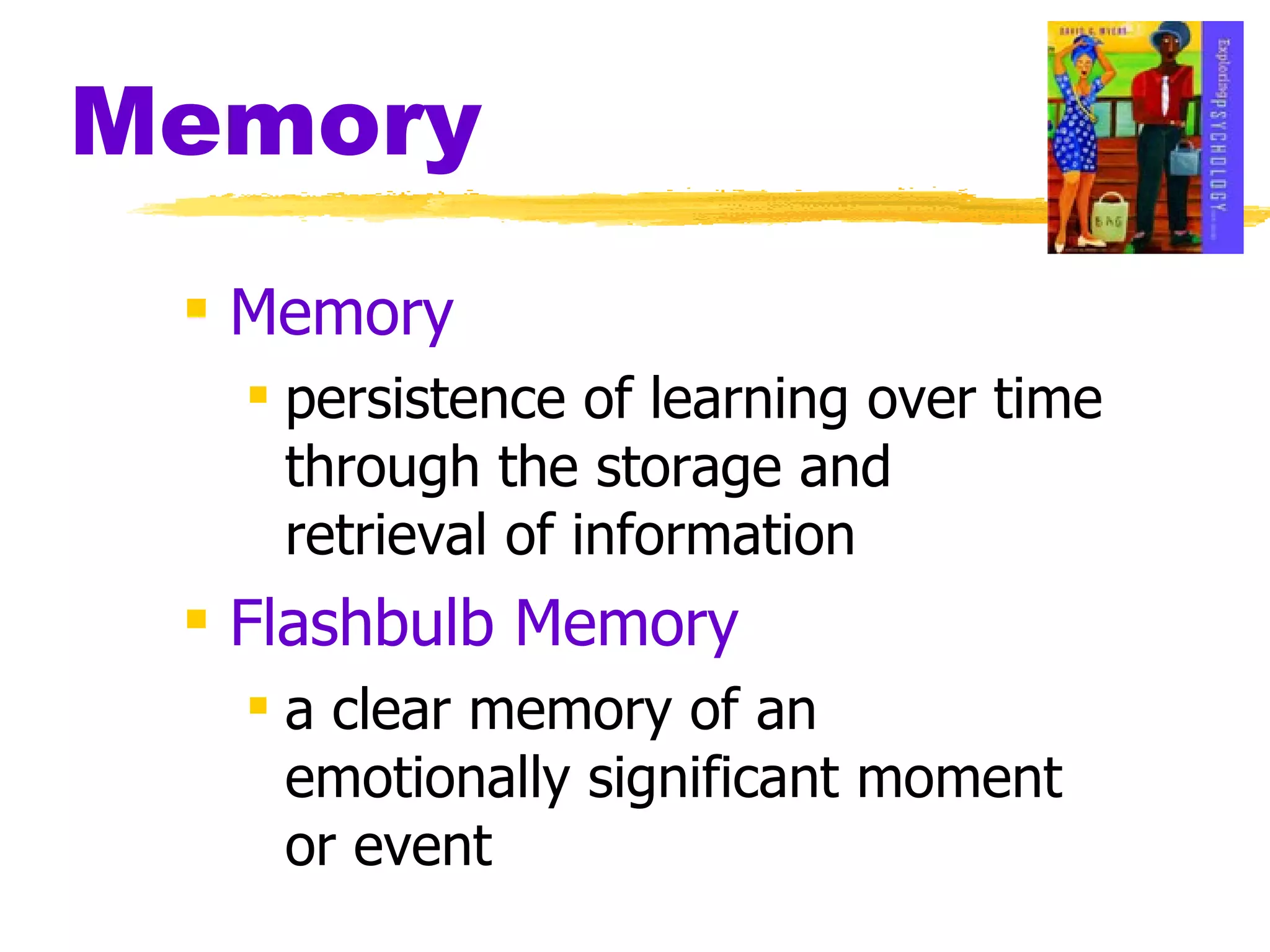 This chapter discusses various aspects of memory, including encoding, storage, and retrieval of information. It describes sensory memory, short-term memory, and long-term memory. Encoding can occur automatically or through effortful processes like rehearsal. Information is stored over time through mechanisms like synaptic changes and long-term potentiation. Retrieval involves recall and recognition processes, and is aided by cues. Forgetting can result from failures at different stages of memory or through interference. Memory is reconstructive and subject to biases.
