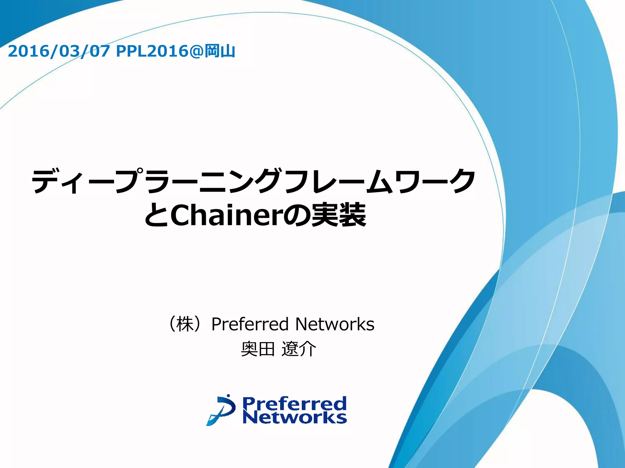 ディープラーニングの研究開発時には、計算を支援するためのフレームワークが用いられる。ChainerはPython上で動くディープラーニングフレームワークの一つである。他の多くのフレームワークと異なり、順伝播処理を行った時の実行履歴情報をもとに逆伝播のグラフを動的に構築するdefine-by-runという方式を採用している。この方式により、分岐や再帰を含むような複雑な構造のネットワークも直感的に構築でき、加えてデバッグが容易である。また、CuPyと呼ばれるNumPyサブセットのCUDAによる行列演算ライブラリを作成し、バックエンドとして利用している。本講演では、ディープラーニングフレームワークの基礎と実装、そして課題についてChainerを通して説明する。