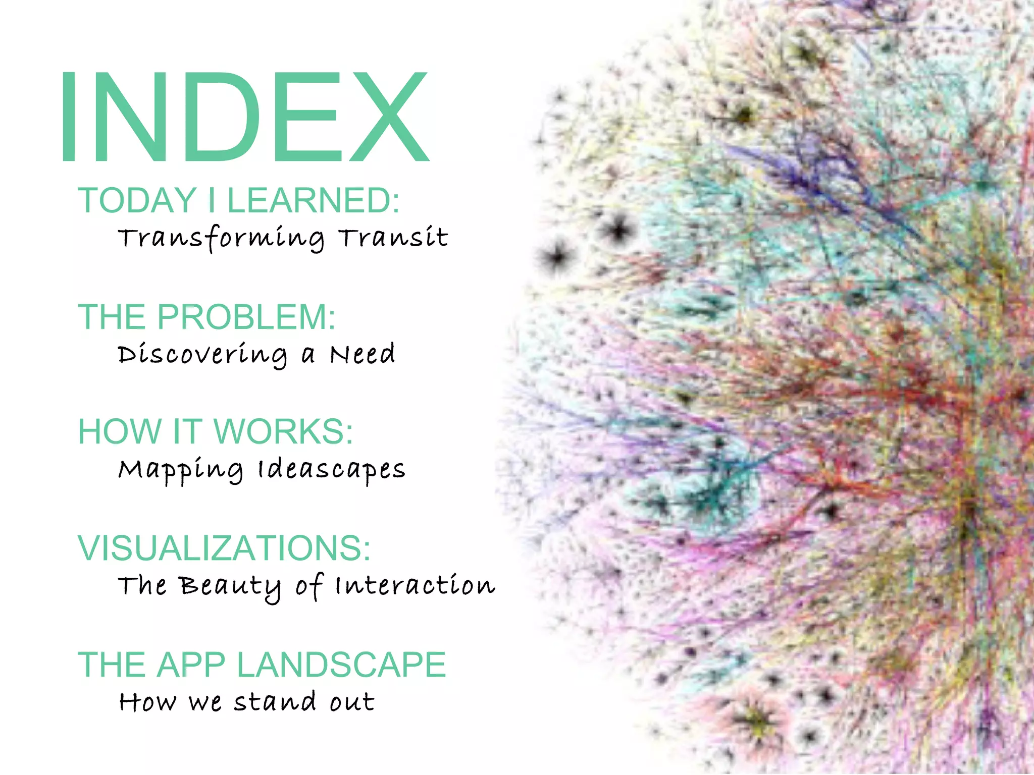- Today I Learned is a proposed mobile app that allows public transit users to anonymously share 140-character messages about what they learned that day and have conversations with other users on their route.