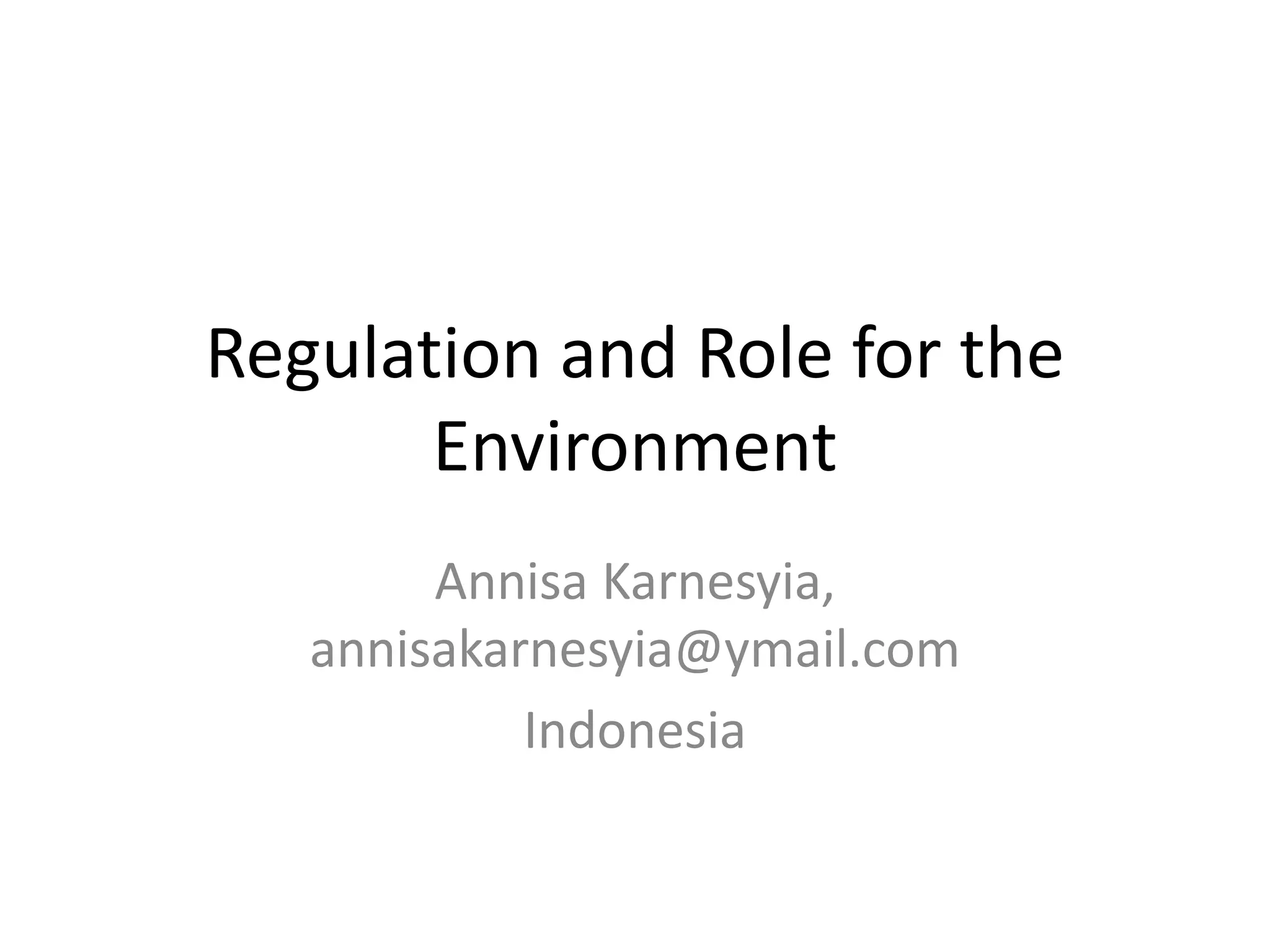 The document discusses environmental regulation and the role of industry in Indonesia. It notes that over 252,172 hectares of natural forest in Riau, Indonesia have been destroyed by industrial activity from 2012-2013, leaving only 1.7 million hectares remaining. While industry growth is driven by free market capitalism and consumer demand, certain industries threaten environmental sustainability. The document argues that morals and ethics around protecting the environment should limit industry and the free market. It proposes a regulatory framework where the government acts to protect the environment and regulate industry for compliance, involving local communities and environmental organizations in oversight.