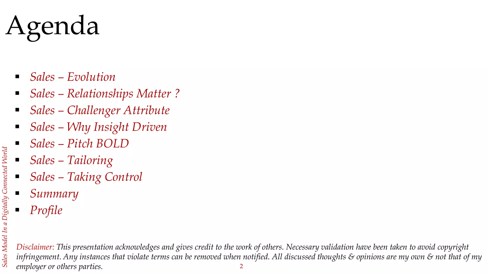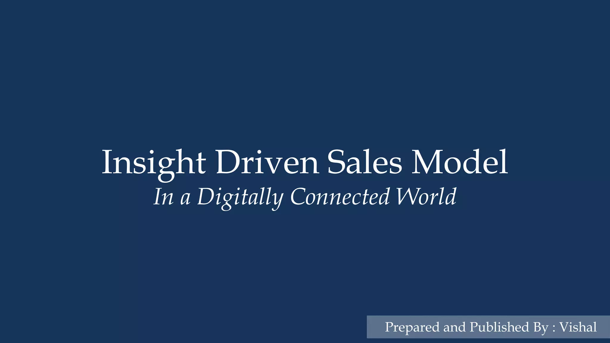 This document discusses the evolution of sales strategies from product selling to insight driven sales. It advocates for adopting a challenger sales model in today's digitally connected world. The challenger sales model focuses on teaching customers through insights, tailoring the message for each stakeholder, and taking control of the sales process. It emphasizes pushing customers out of their comfort zone to help them make progress on their goals.