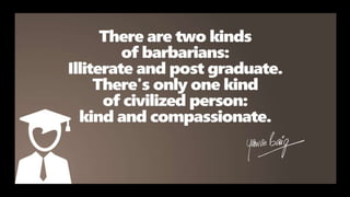 Educators face the challenge of preparing students for an unknown future. Teachers must inspire students and be role models who students admire. To succeed, education must focus on developing critical thinking, questioning and problem solving over memorization. Teachers should integrate subjects and relate lessons to the real world to spark curiosity and make learning meaningful.
