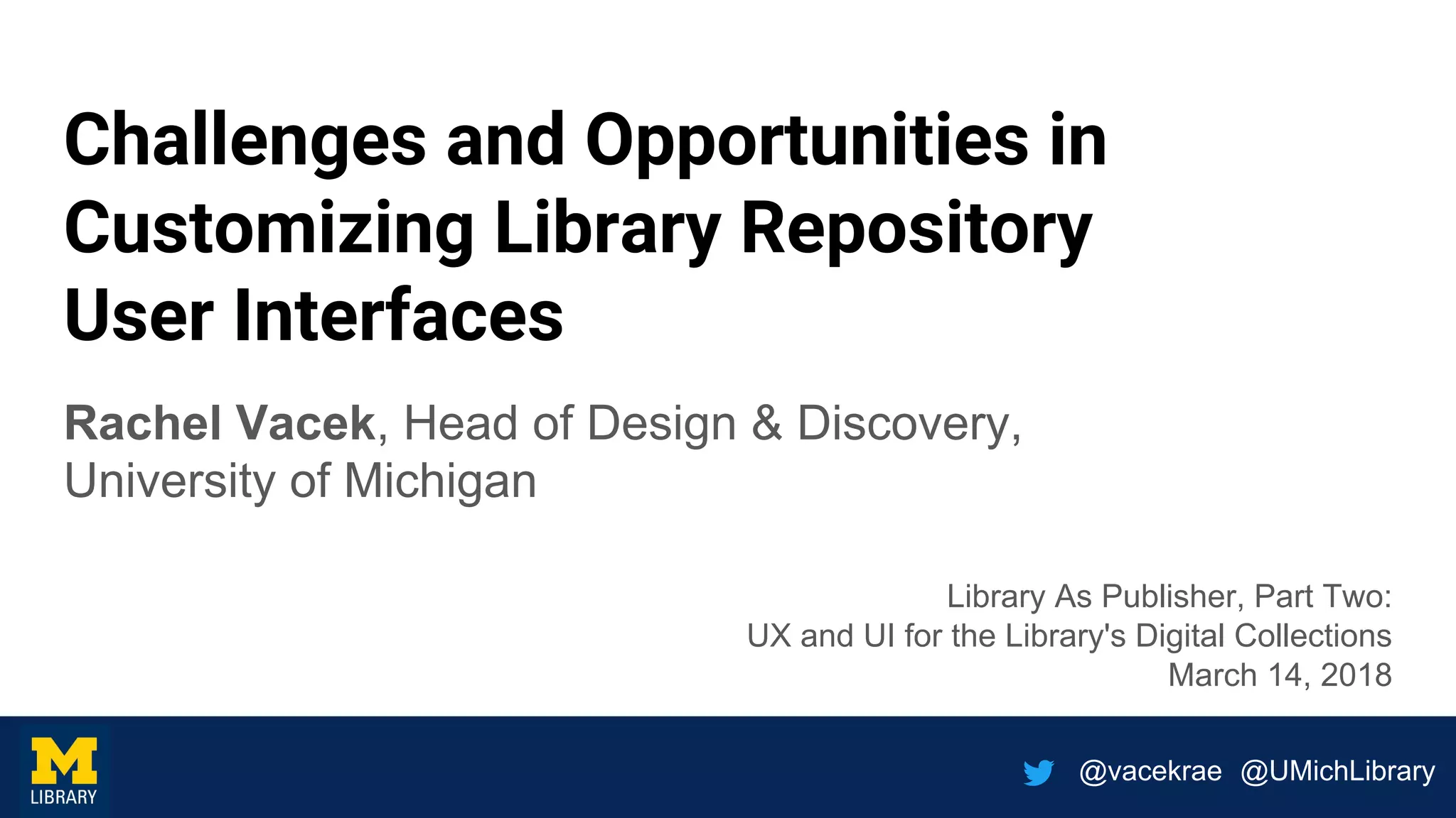 The document discusses the challenges and opportunities in customizing user interfaces for library repositories, highlighting differences between out-of-the-box and open source solutions. It emphasizes the importance of user experience research and adaptability in digital library interfaces to meet evolving scholarly needs. The increasing complexity of digital collections necessitates improved discovery tools and cross-institutional collaboration to enhance user interaction and accessibility.