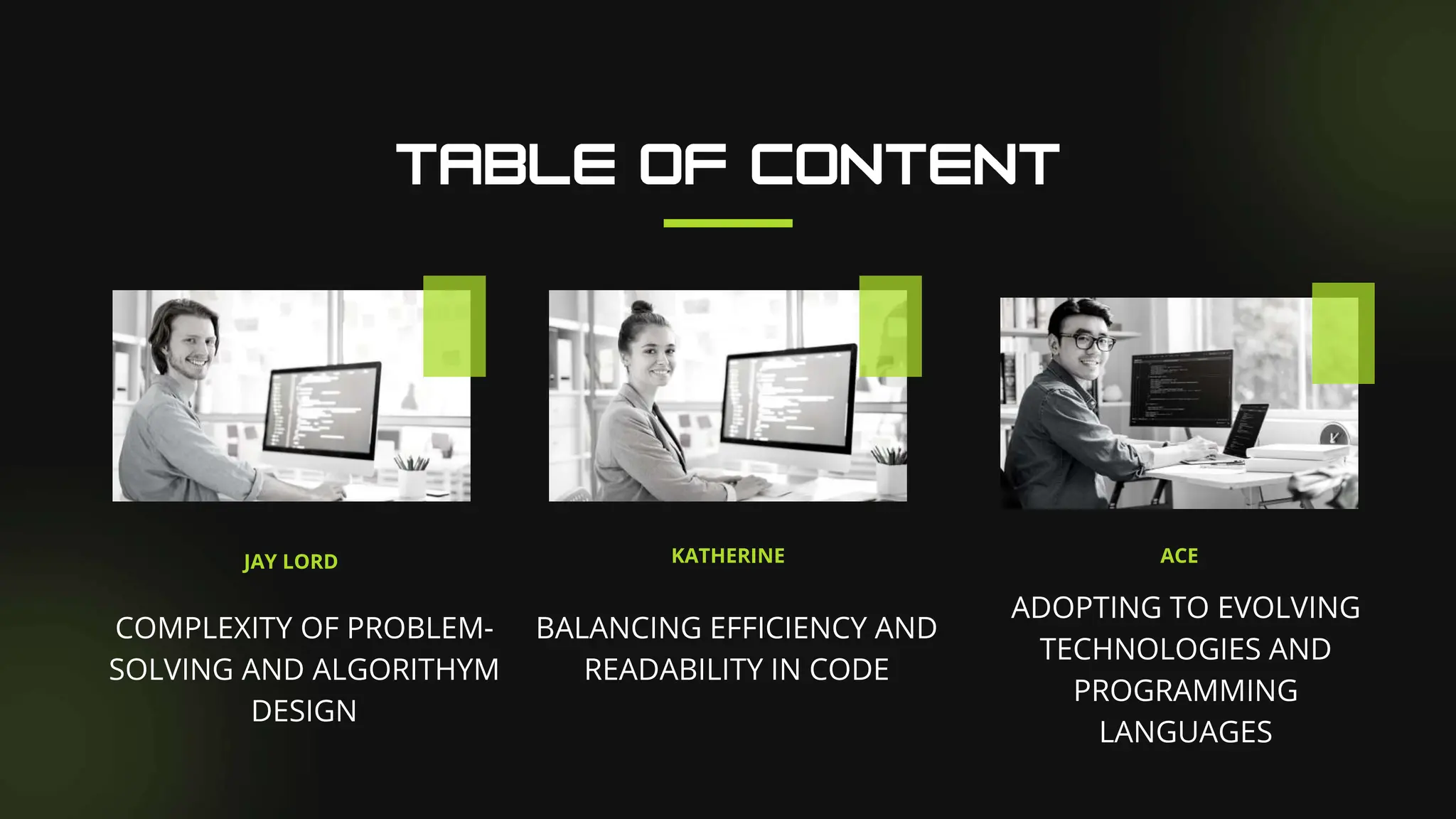 The document outlines a structured algorithm development process for problem-solving in programming, consisting of five major steps: obtaining a problem description, analyzing the problem, developing a high-level algorithm, refining the algorithm with details, and reviewing the algorithm for effectiveness. It emphasizes the importance of accuracy, performance, and readability in code, explaining how these elements can conflict and the need for balance depending on context. The latter sections illustrate the trade-offs between readability and performance through examples in SQL code, highlighting the challenges faced in maintaining code quality amid evolving requirements.