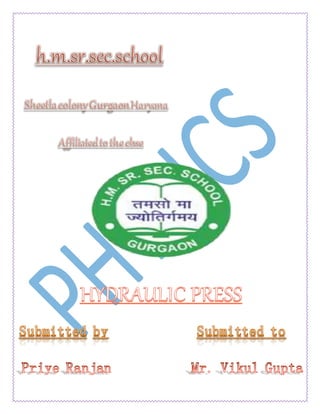 The hydraulic press works on Pascal's principle of constant pressure throughout a closed system. It has two cylinders connected by piping and filled with fluid. One cylinder has a small piston and the other a large piston. Force applied to the small piston is transmitted undiminished through the fluid to the large piston, generating a force proportional to the ratio of piston areas. Only small movements of the small piston are needed to achieve significant movement of the large piston, satisfying energy conservation. Hydraulic presses are widely used for metal forming, food compaction, and other applications due to their ability to efficiently generate very large forces.
