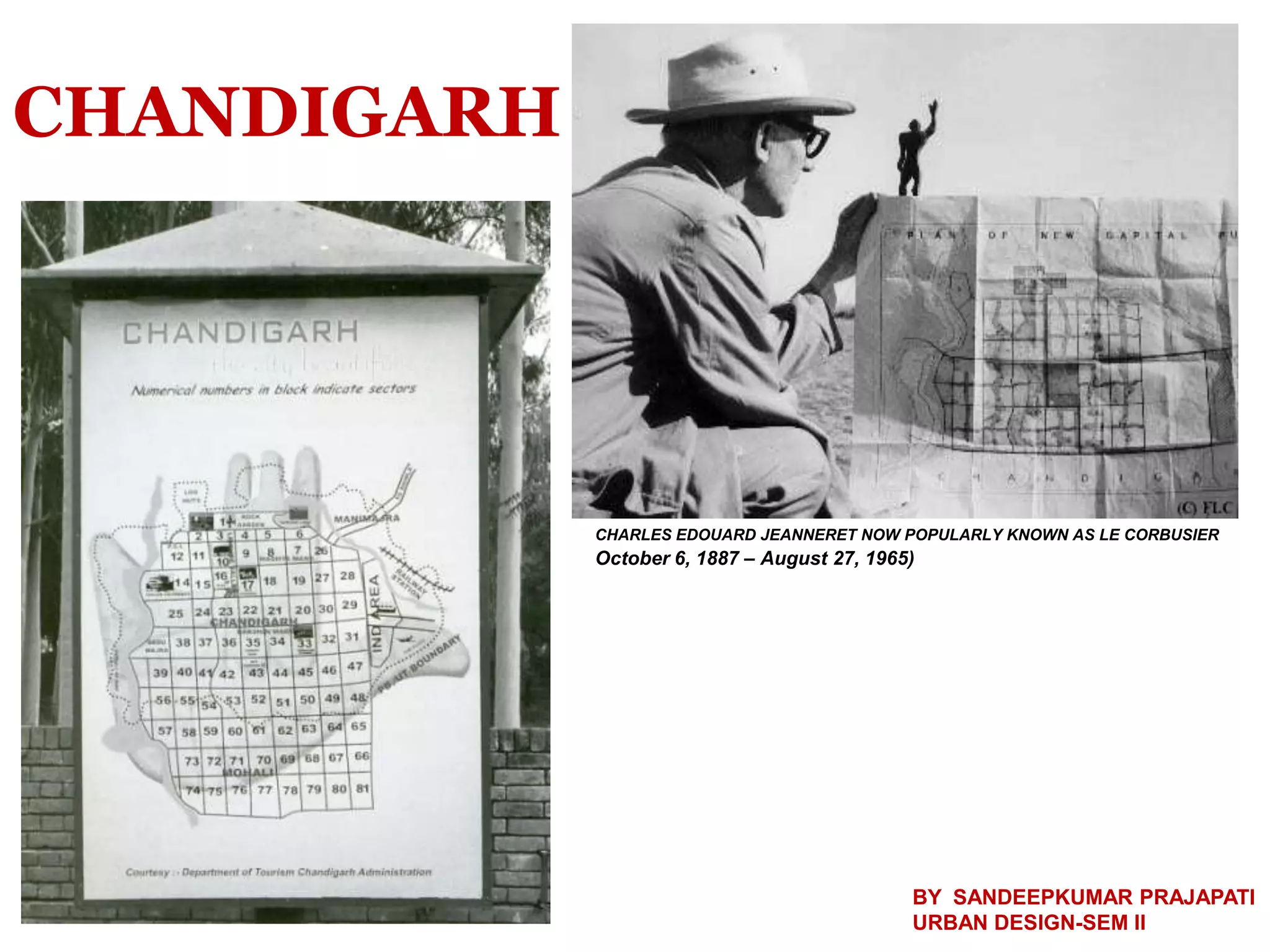 Le Corbusier was approached by the Punjab government to design the new capital city of Chandigarh after the partition of India. The initial master plan for Chandigarh was designed by Albert Mayer but Le Corbusier later took control of the project in 1951. Le Corbusier's design for Chandigarh featured sectors as self-contained neighborhood units organized in a grid pattern. Each sector contained housing as well as schools, shops, and parks. The Capitol Complex at the center of the city featured important government buildings arranged around open plazas. Chandigarh became a bold experiment in modern urban planning that showed a new way of urban life in India.