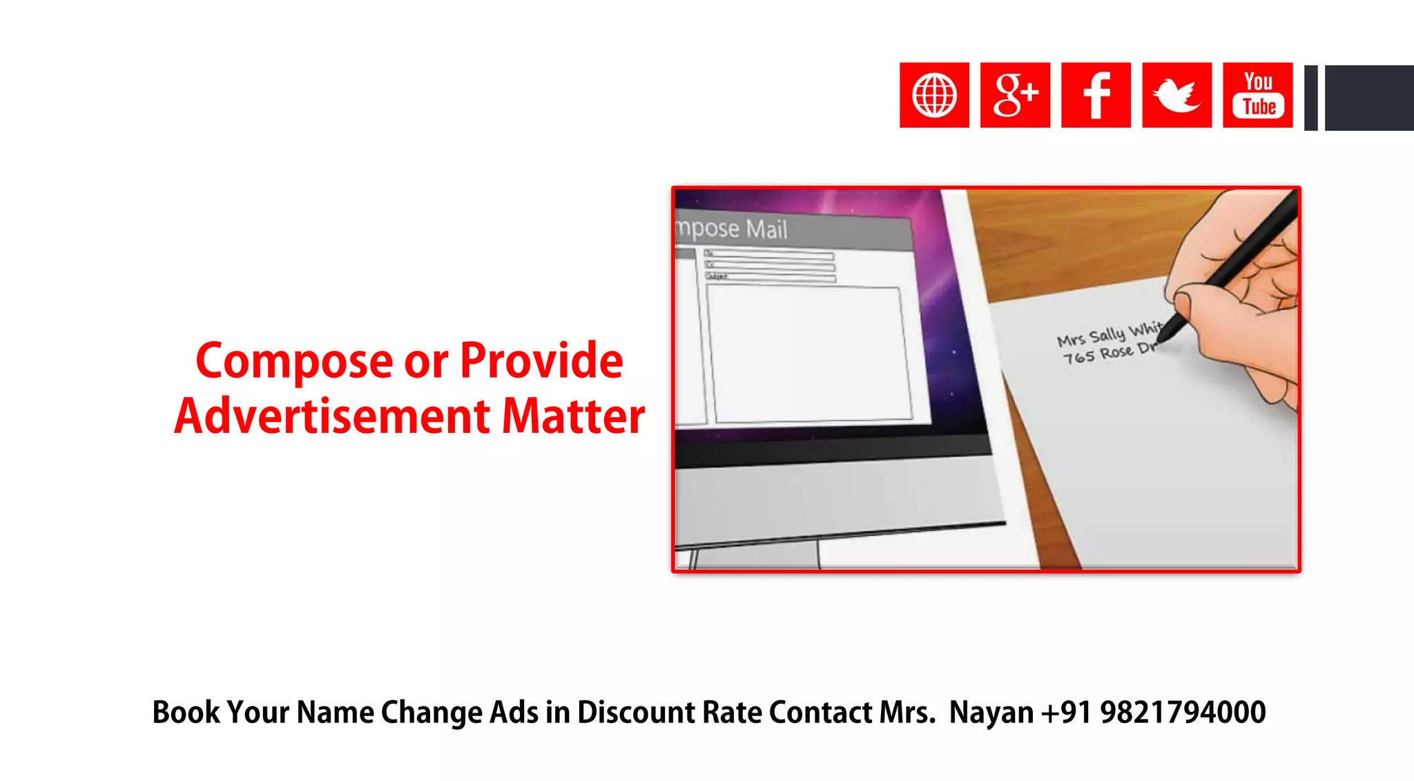 This document provides information about booking a name change advertisement in newspapers in Maharashtra, India. It lists the documents required like an affidavit or gazette copy and the types of name change advertisements available, such as after marriage or religion. It details the simple booking procedure of emailing the ad content, approving the designed ad, and making payment for the ad to be released. Contact information is provided to book an ad with discounts.