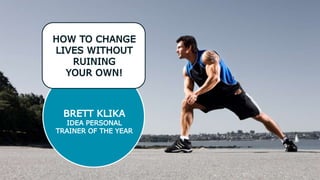 This document promotes the website www.7minutestofit.com and provides tips for how to change lives without ruining your own. It suggests taking care of yourself through exercise, sleep, nutrition, massage, indulgence, deep breathing, active listening, expressing gratitude, maintaining a positive energy, journaling, spending time on hobbies outside of work, consulting mentors, attending conferences, meditation, and connecting to a higher power. The overall message is that caring for your physical and mental well-being enables you to better help others.