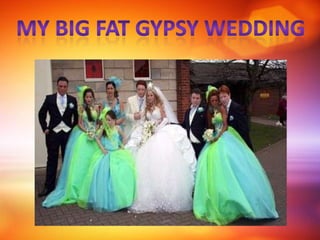 My Big Fat Gypsy Wedding is a British documentary series that aired on Channel 4 from 2010-2012, profiling the lives of Romani people in the UK. It uses an expository mode with voiceovers and interviews to explore memories and opinions about weddings and events in an entertaining way. The interviews change locations and elicit emotional responses from audiences. Channel 4 is known for realistic documentaries that use expository modes to engage audiences.