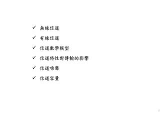 • 不同的物理信道具有不同的特性C(ω), 常見的情況是C(ω) = const.(通常可取1).