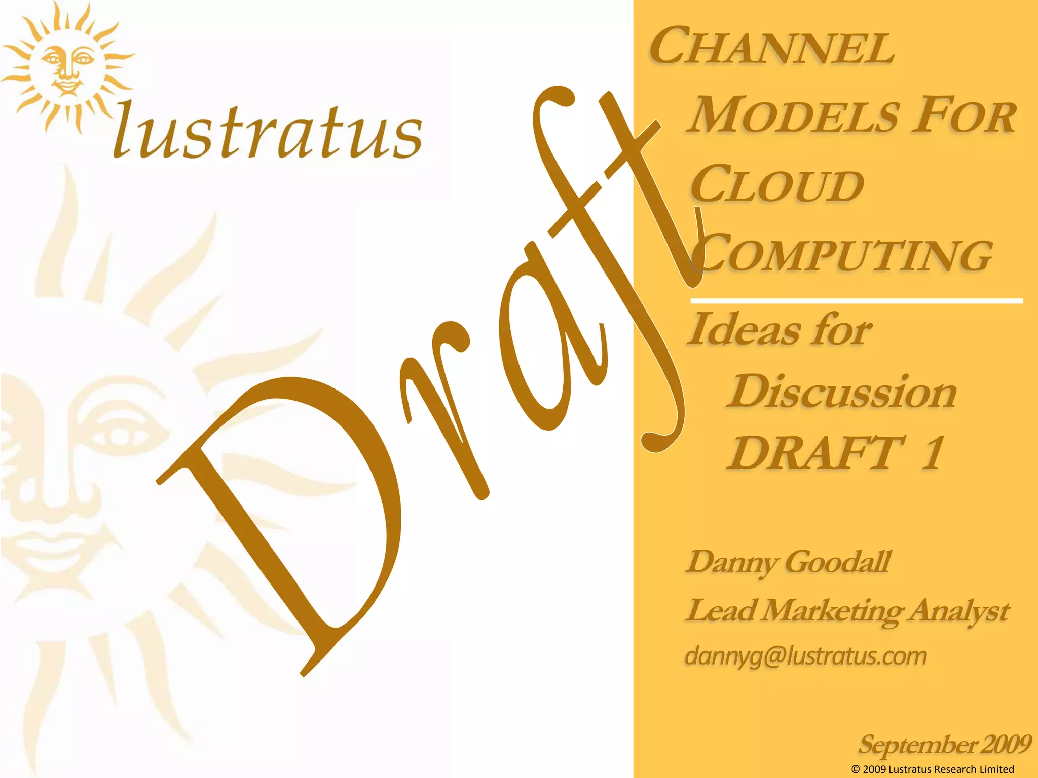 This document discusses the development of market segmentation models for cloud computing, focusing on the likely channel models that will emerge. It outlines definitions and technical capabilities associated with various cloud services, including infrastructure, platform, and software services. The draft aims to facilitate discussion and will be updated as new insights are gained.