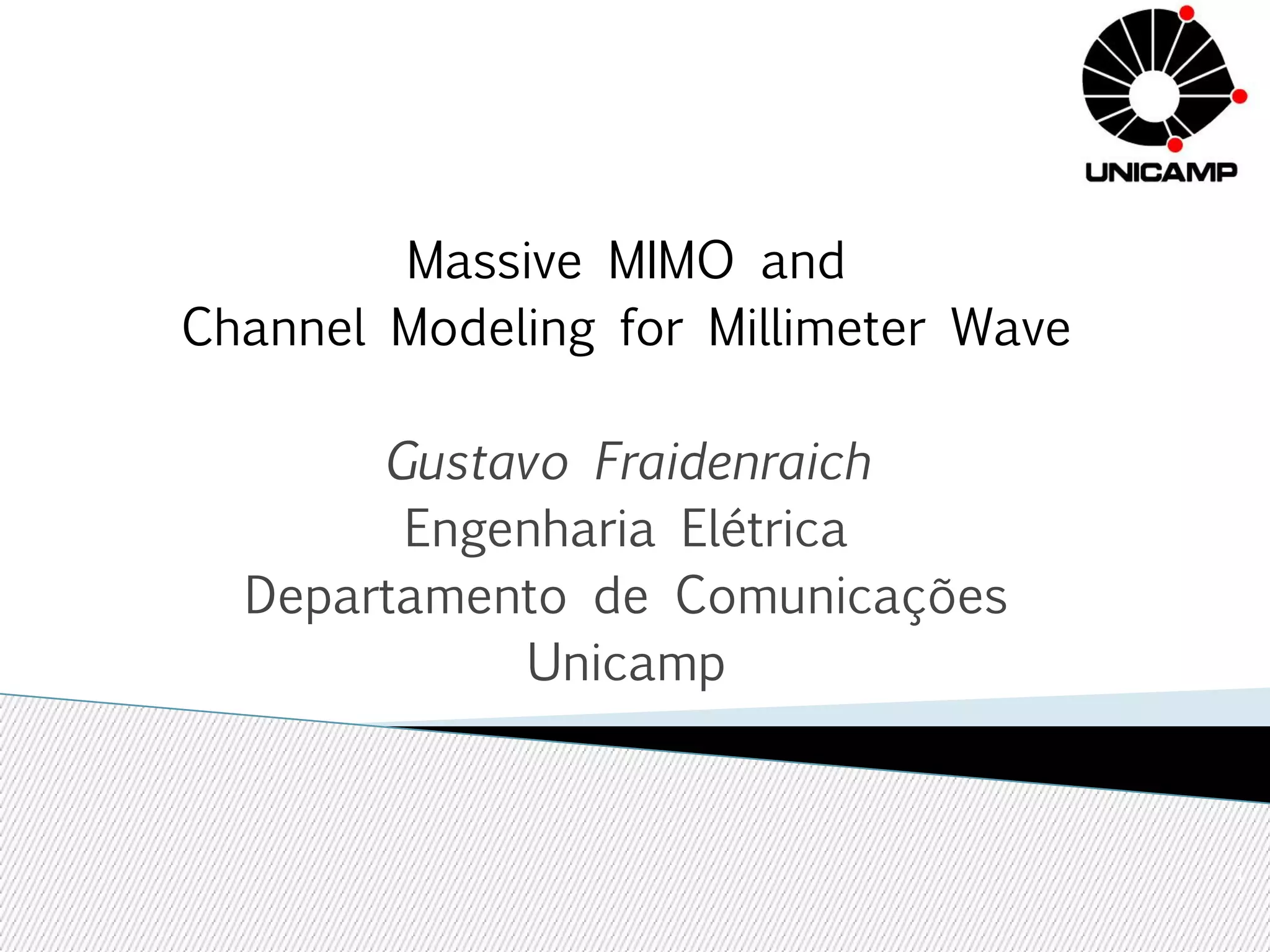 The document discusses the concept of massive MIMO (Multiple Input Multiple Output) systems and their application in millimeter wave communication. It highlights how such systems can achieve significant performance improvements through large antenna arrays at base stations, allowing for simultaneous user servicing and improved channel modeling. Additionally, it addresses challenges like pilot contamination and penetration loss, stressing the need for advanced channel modeling techniques in next-generation wireless systems.