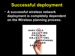 Channel planning is critical for wireless network deployment. Poor planning can lead to unreliable networks with low capacity and performance. Assigning appropriate radio channels to each base station while determining frequency reuse ratios and cell separation distances is an important but difficult process. Cellular systems do not always follow homogeneous path loss models. Control channels are vital and generally use more conservative frequency reuse than voice channels. Cell breathing occurs as CDMA cell sizes dynamically shrink and grow depending on the number of users in the cell. Near-far problem and reverse link power control are also important CDMA concepts.