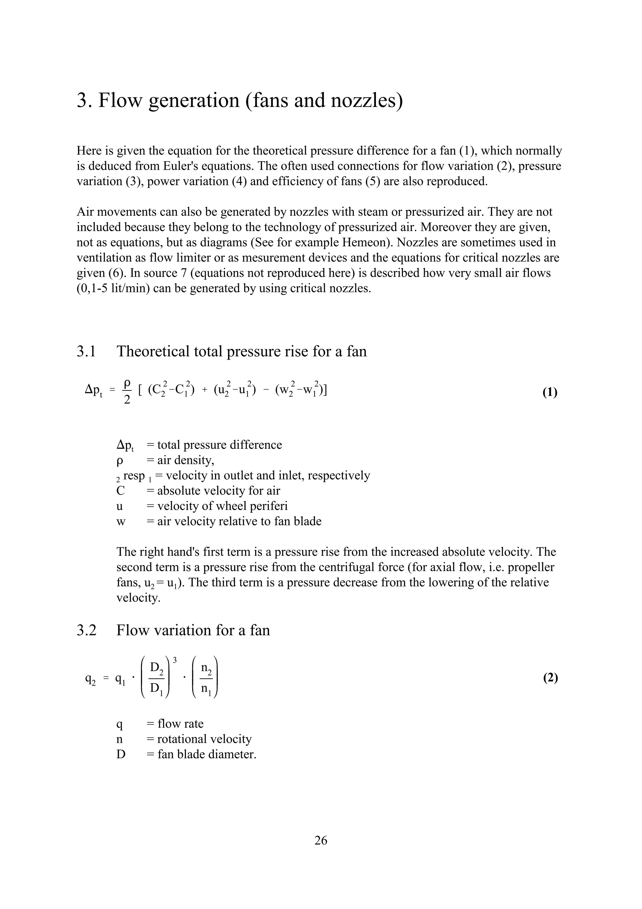 This document contains equations related to air flow generated by fans and nozzles. It includes equations for: