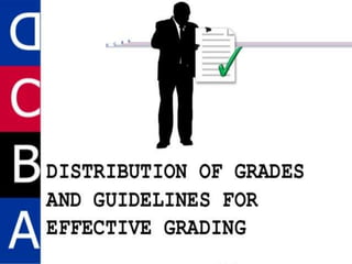 The document discusses various methods for grading and reporting student progress. It begins by outlining the main purposes of grading systems, which include instructional use, reporting to parents, and administrative/guidance functions. It then describes several common grading systems like traditional letter grades, pass/fail, checklists of objectives, letters to parents, portfolios, and parent-teacher conferences. For each system, it provides details on how the system works and potential advantages and disadvantages. The document concludes by providing guidelines for developing effective grading and reporting systems and conducting productive parent-teacher conferences.
