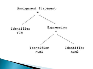The document discusses system software and language processors. It defines system software as software designed to operate and control computer hardware and provide a platform for running application software. This includes operating systems, compilers, assemblers, and device drivers. Language processors help bridge semantic gaps between how software is specified and how it is implemented by performing tasks like translation, interpretation, and generation of intermediate representations. The key functions of a language processor's front-end include lexical analysis, syntax analysis, and semantic analysis to analyze the source program and produce tables of information and an intermediate code representation.