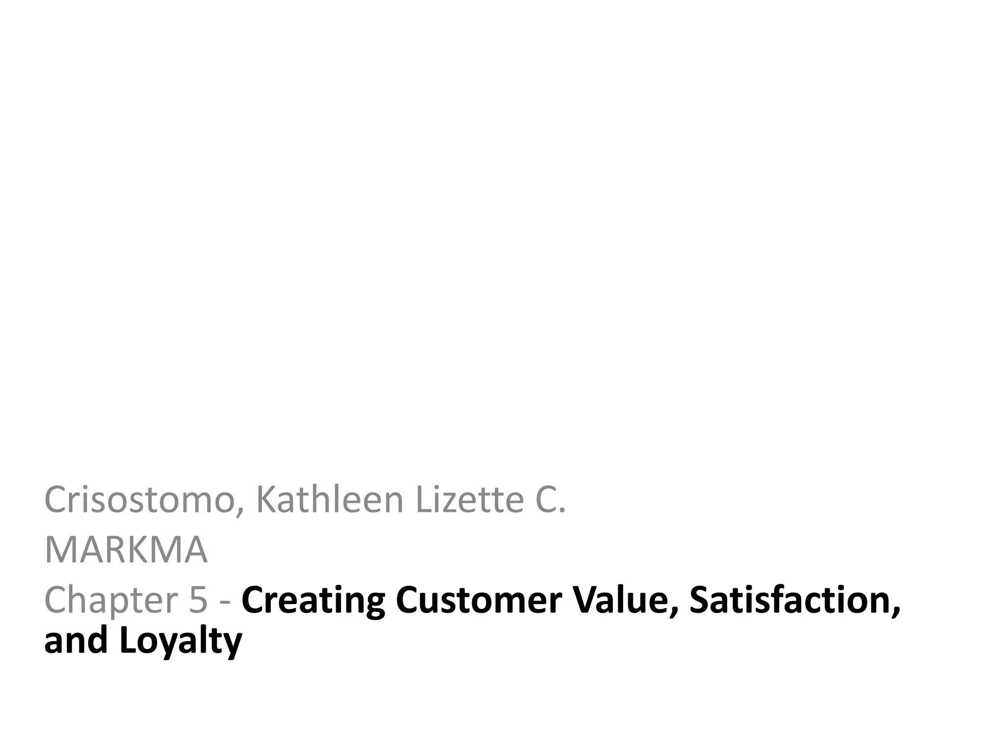 The document discusses key concepts for creating customer value, satisfaction, and loyalty. It defines customer perceived value, loyalty, quality, and profitable customers. Satisfaction is described as being equivalent to customer lifetime value. Customer relationship management is introduced as carefully managing customer information to maximize loyalty across interactions. An effective CRM framework includes identifying and differentiating customers then customizing interactions. Common CRM strategies are outlined like reducing defection rates and focusing efforts on high-profit customers.
