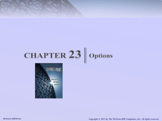 This document discusses various types of options and their payoff structures. It explores call options, which give the right to buy an asset, and put options, which give the right to sell an asset. It provides examples of how option values are calculated based on the underlying asset price and exercise price. The key concepts covered include the payoff limits and profits for option buyers and sellers. Hedging strategies using options are also briefly discussed.