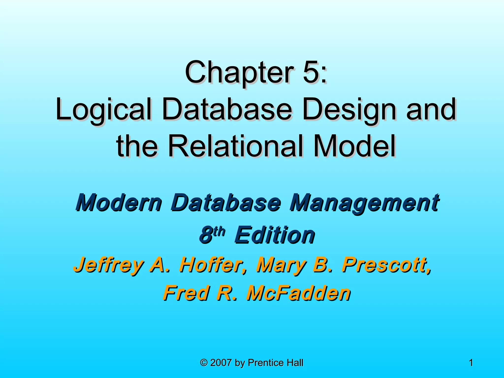 This chapter discusses logical database design and the relational model. It defines key terms like relation, attributes, keys, and integrity constraints. Relations are two-dimensional tables that correspond to entity types and relationships from an E-R diagram. The chapter describes how to transform E-R diagrams into relational tables, including how to map different entity types, relationships, and attributes. It also covers mapping constraints like referential integrity and normalizing relations.