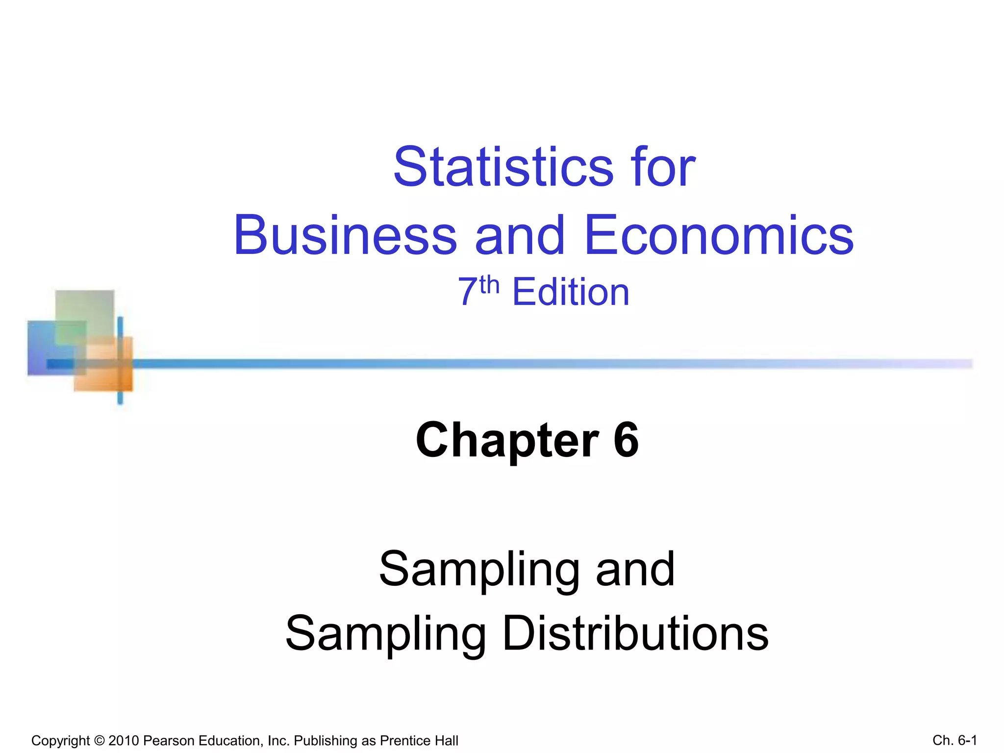 This chapter discusses sampling and sampling distributions. The key points are: