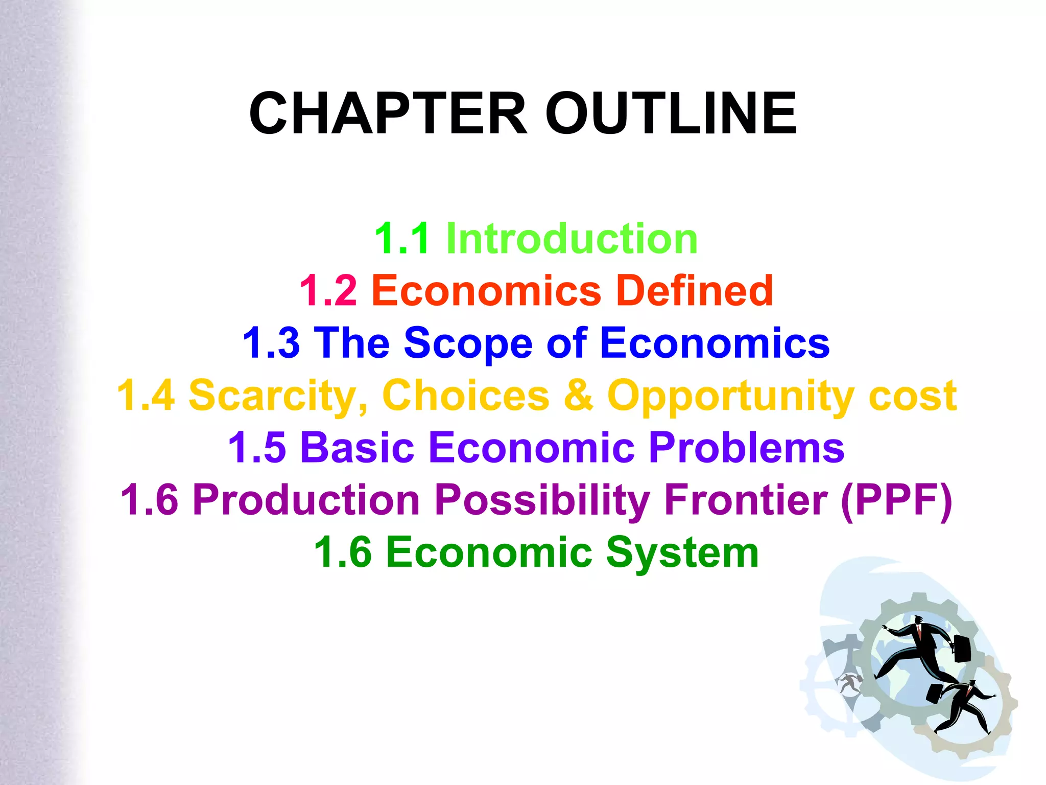 1) Economics is defined as the study of how people use limited resources to fulfill unlimited wants. It involves choices under scarcity.