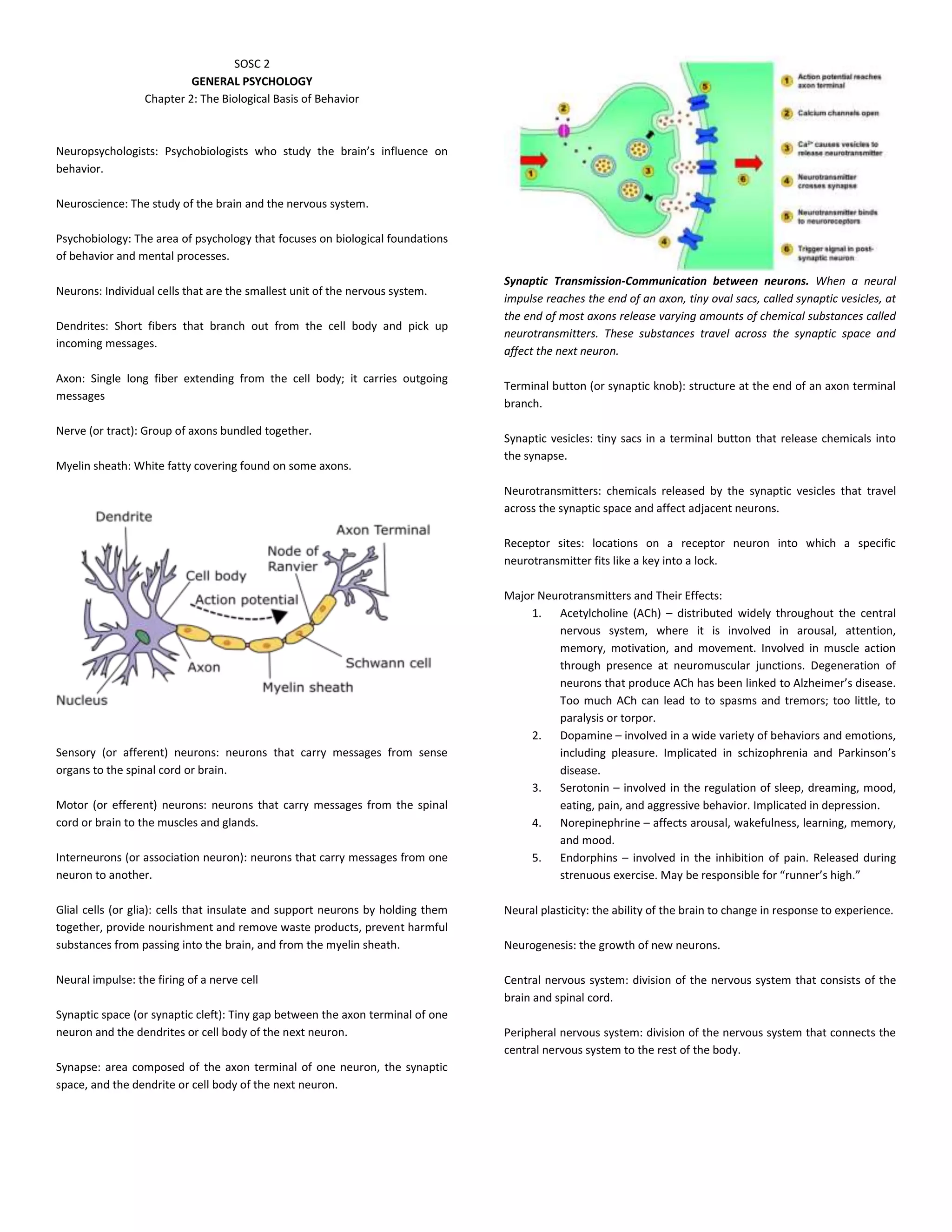 This document provides an overview of the biological basis of behavior, including the structure and function of the nervous system. It discusses neurons, neurotransmitters, and how they communicate between each other. It describes the divisions and parts of the brain, including the cerebral cortex and limbic system. Tools for studying the nervous system like EEG, MRI, and PET scans are also summarized. The relationship between genetics, genes, and behavior is briefly covered. The endocrine and autonomic nervous systems are defined and compared.