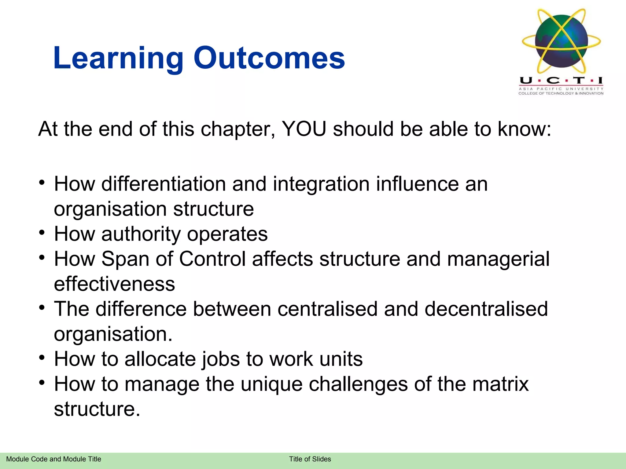 3) The advantages and disadvantages of different spans of control (narrow vs wide) and organizational designs (functional, product, geographic, matrix) are outlined.