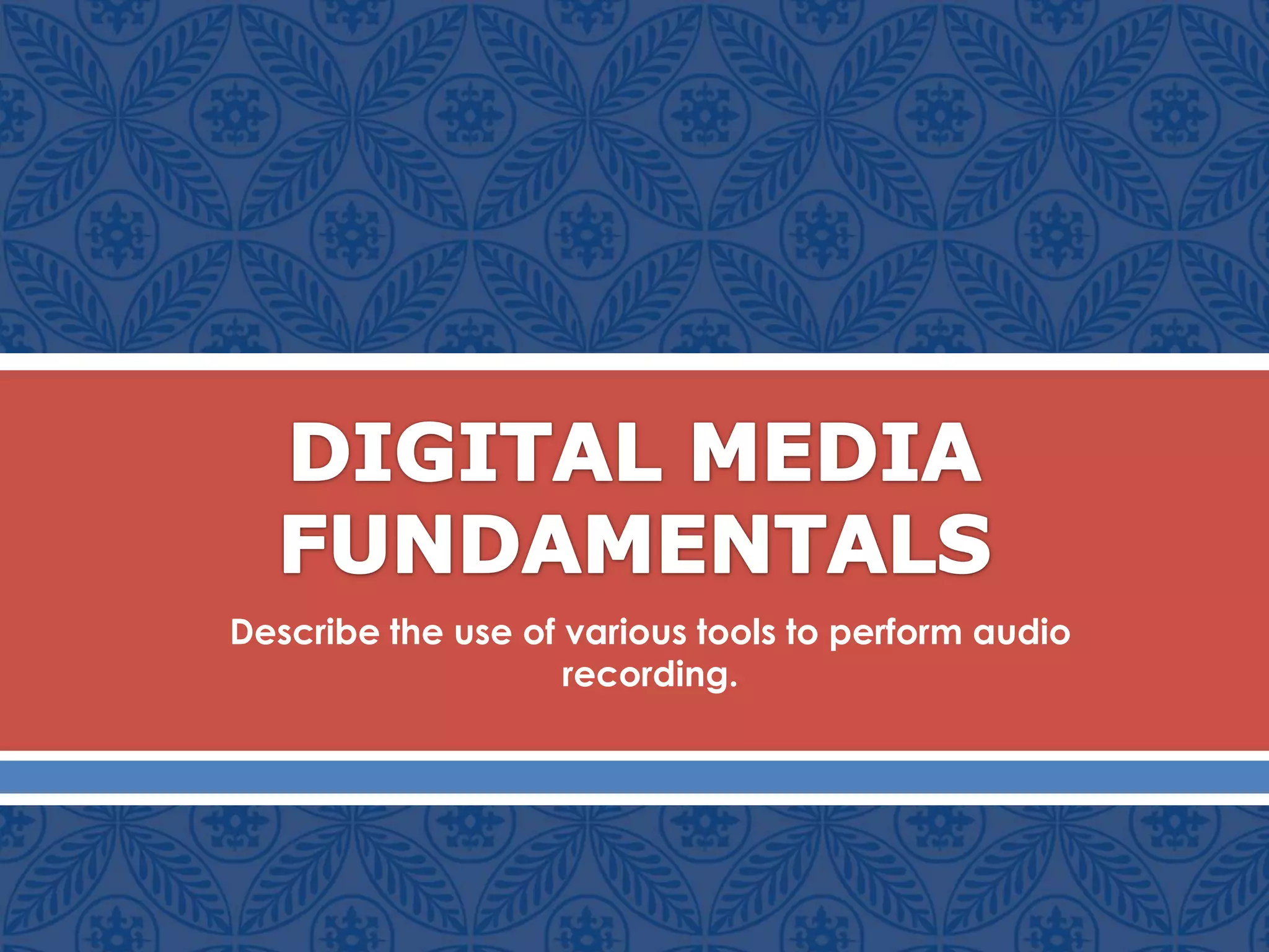This document provides guidance on using computer tools for audio recording. It discusses using simple recording hardware like microphones connected directly to a computer. It also covers advanced external recording hardware that provides better sound quality and flexibility. The document recommends choosing audio recording software like Audacity that is free and powerful for basic needs, or paid programs like Adobe Audition or ProTools for professional use. It provides steps for setting up equipment and software, recording multiple audio tracks, and choosing file formats like MP3s and WAV for sharing finished recordings.