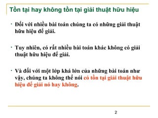 Tài liệu đề cập đến các vấn đề NP-đầy đủ trong lý thuyết tính toán, bao gồm các thuộc tính của các thuật toán xác định và không xác định cũng như các bài toán NP-đầy đủ như bài toán thỏa mãn mạch logic và bài toán người thương gia du hành. Nó cũng trình bày về định lý Cook, khả thu giảm đa thức, và các kỹ thuật để giải quyết các bài toán NP-đầy đủ, chẳng hạn như sử dụng thuật toán xấp xỉ và metaheuristic. Cuối cùng, tài liệu phân loại các bài toán theo độ khó và nhấn mạnh tầm quan trọng của lý thuyết NP-đầy đủ trong xác định tính chất khó dễ của các bài toán mới.