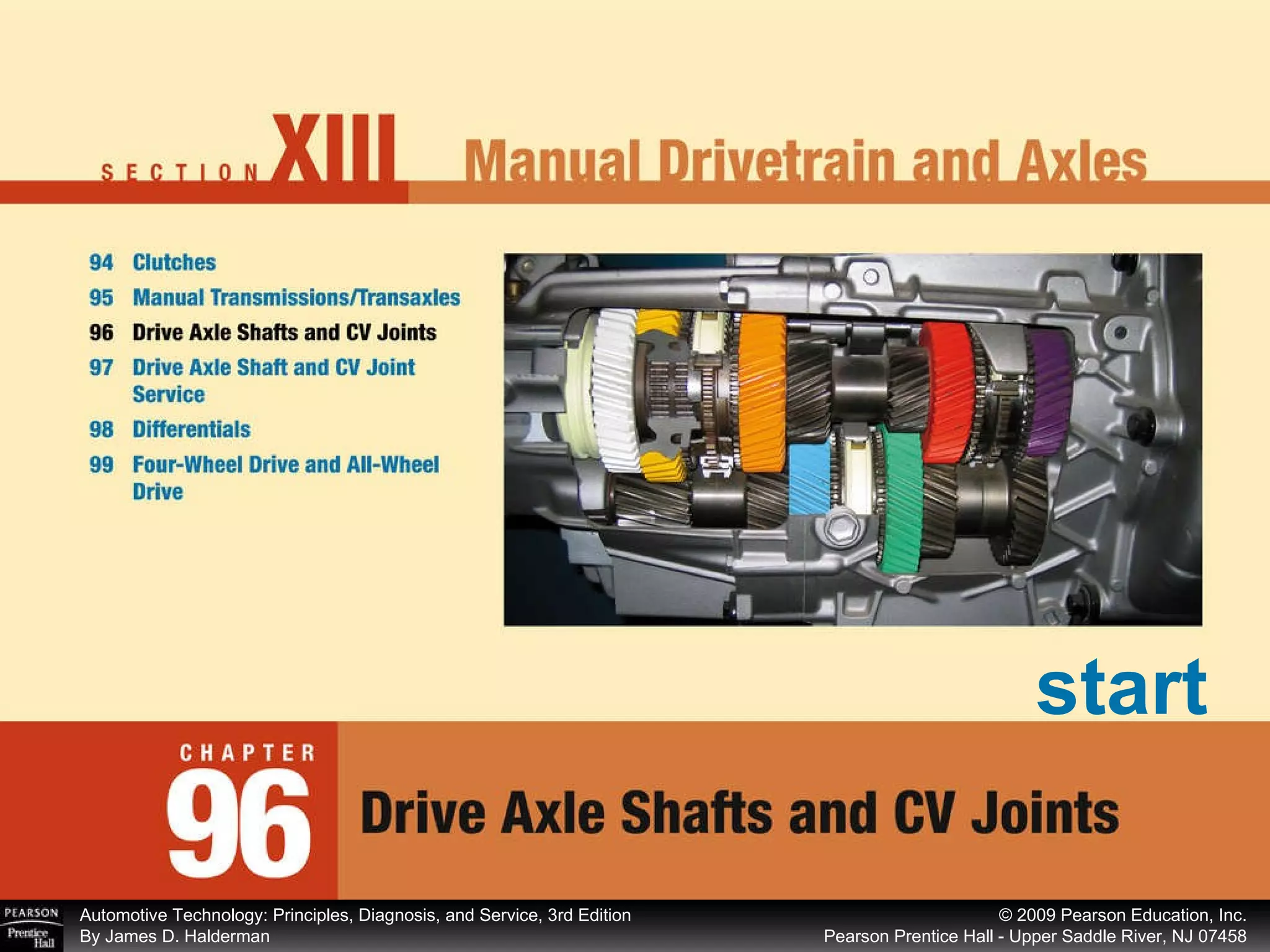 The document discusses drive shafts, U-joints, and CV joints used in vehicle suspension and steering systems. It defines key parts like the driveshaft, U-joints, and CV joints. It describes how U-joints and CV joints work, the different types of each, and their functions in transferring power from the transmission to the wheels while allowing for suspension movement. The document also discusses driveshaft design, balancing, and materials as well as factors that affect vibration.