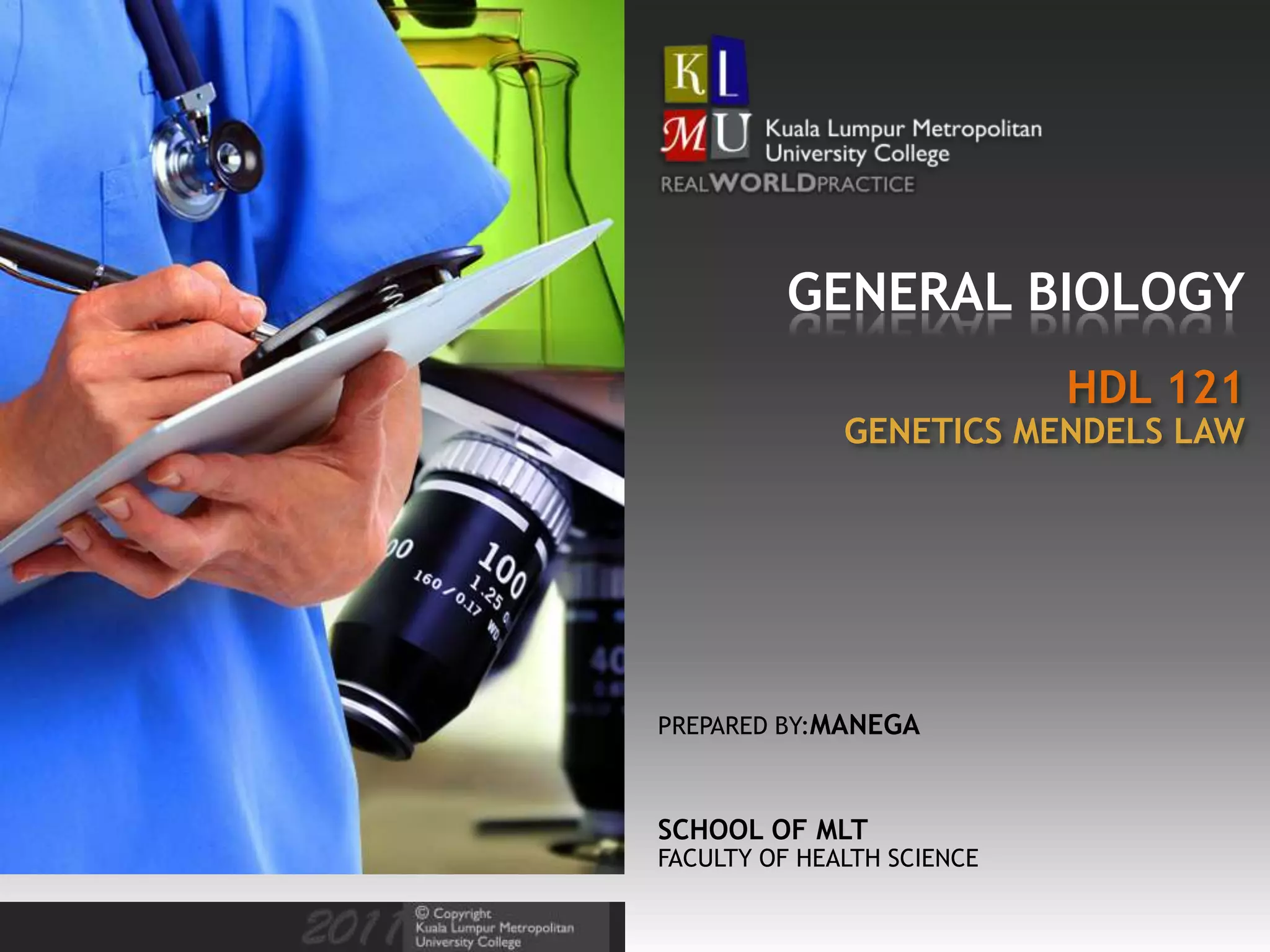 The document discusses Mendel's experiments on inheritance using garden peas. It explains key terms like alleles, genotypes, phenotypes. It describes how Mendel conducted a monohybrid cross by breeding pure-breeding tall and short pea plants. His findings showed that traits are inherited in discrete units (now called genes) and follow predictable patterns, laying the foundation for modern genetics. The ratios of offspring in the F2 generation supported his first law of segregation.
